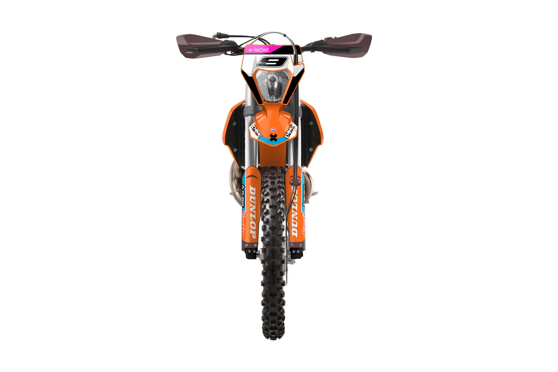 «ChustomDesign» — готовый комплект графики серии Maverick для KTM Enduro Graphic Kit KTM EXC 150 2017. В комплекте: графика на бак и боковые облицовки, крылья (переднее и заднее), передний щиток, номерные таблички, защита вилки. Материал: ПВХ-винил 80 мкр с холодной ламинацией 300 мкр, общая толщина 380 мкр; покрытие глянцевое или матовое на выбор. Устойчив к UV-излучению, воде, бензину и мойке высокого давления. Клей акриловый на сольвентной основе — постоянный, для гибких пластиков. На простых поверхностях монтируется без нагрева; для сложных изгибов рекомендуем фен. Этот пресет можно заказать как есть или взять за основу в конструкторе: поменять цвета, добавить стартовый номер и свой бренд. Производство — 3–5 рабочих дней, доставка по России СДЭКом или Почтой, по СНГ — курьерскими службами.