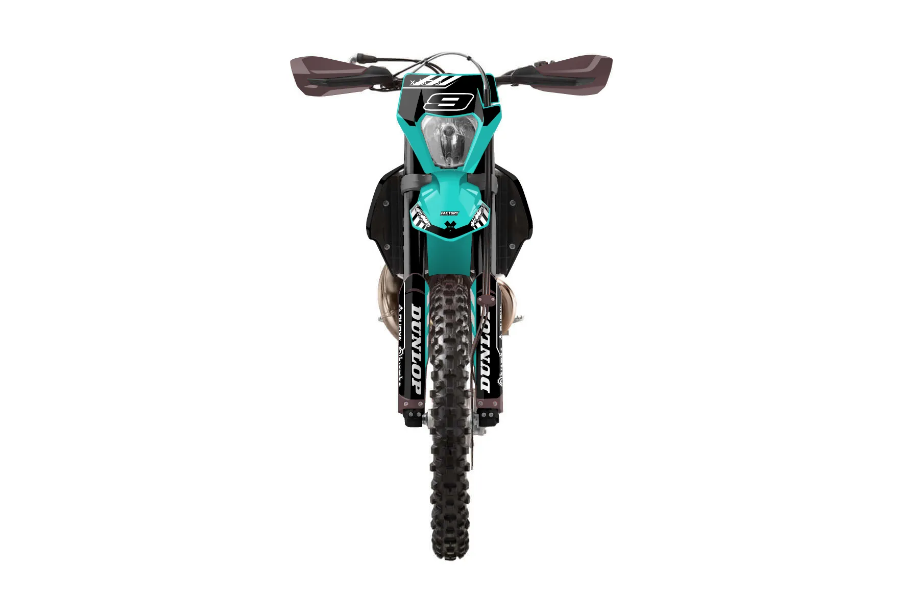«Refuse» — готовый комплект графики серии Maverick для KTM Enduro Graphic Kit KTM EXC 150 2017. В комплекте: графика на бак и боковые облицовки, крылья (переднее и заднее), передний щиток, номерные таблички, защита вилки. Материал: ПВХ-винил 80 мкр с холодной ламинацией 300 мкр, общая толщина 380 мкр; покрытие глянцевое или матовое на выбор. Устойчив к UV-излучению, воде, бензину и мойке высокого давления. Клей акриловый на сольвентной основе — постоянный, для гибких пластиков. На простых поверхностях монтируется без нагрева; для сложных изгибов рекомендуем фен. Этот пресет можно заказать как есть или взять за основу в конструкторе: поменять цвета, добавить стартовый номер и свой бренд. Производство — 3–5 рабочих дней, доставка по России СДЭКом или Почтой, по СНГ — курьерскими службами.