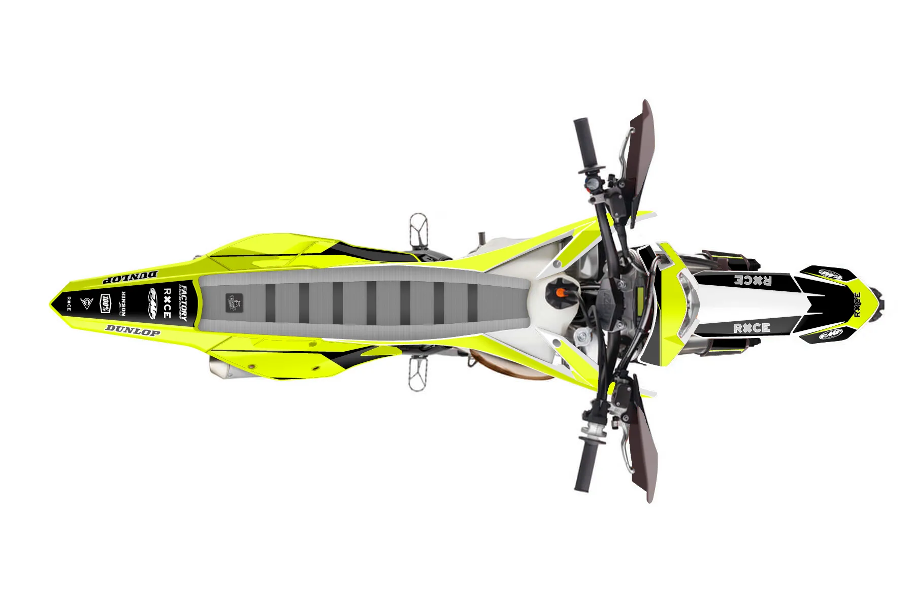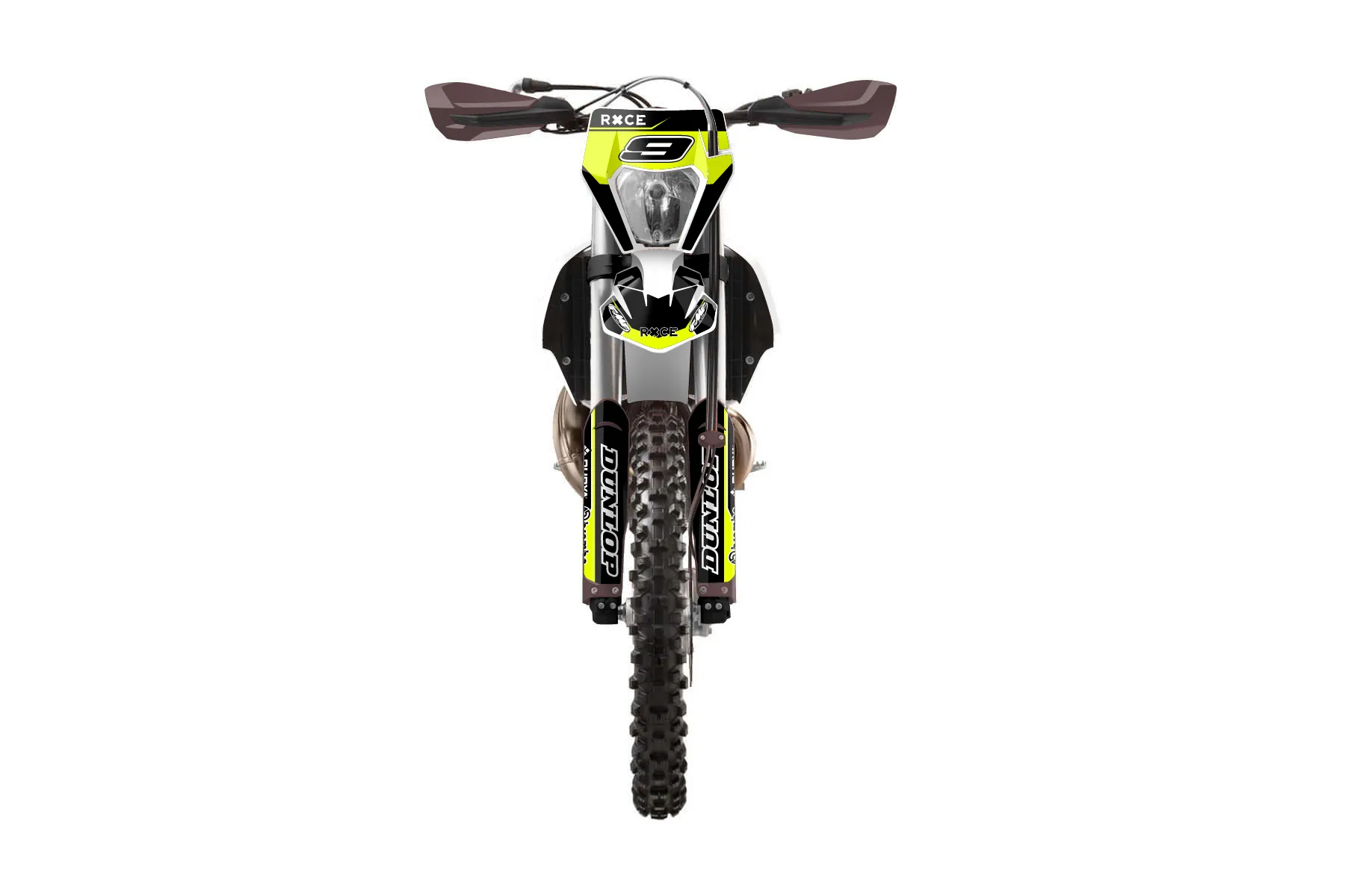 «Ryder Neon» — готовый комплект графики серии Maverick для KTM Enduro Graphic Kit KTM EXC 150 2017. В комплекте: графика на бак и боковые облицовки, крылья (переднее и заднее), передний щиток, номерные таблички, защита вилки. Материал: ПВХ-винил 80 мкр с холодной ламинацией 300 мкр, общая толщина 380 мкр; покрытие глянцевое или матовое на выбор. Устойчив к UV-излучению, воде, бензину и мойке высокого давления. Клей акриловый на сольвентной основе — постоянный, для гибких пластиков. На простых поверхностях монтируется без нагрева; для сложных изгибов рекомендуем фен. Этот пресет можно заказать как есть или взять за основу в конструкторе: поменять цвета, добавить стартовый номер и свой бренд. Производство — 3–5 рабочих дней, доставка по России СДЭКом или Почтой, по СНГ — курьерскими службами.