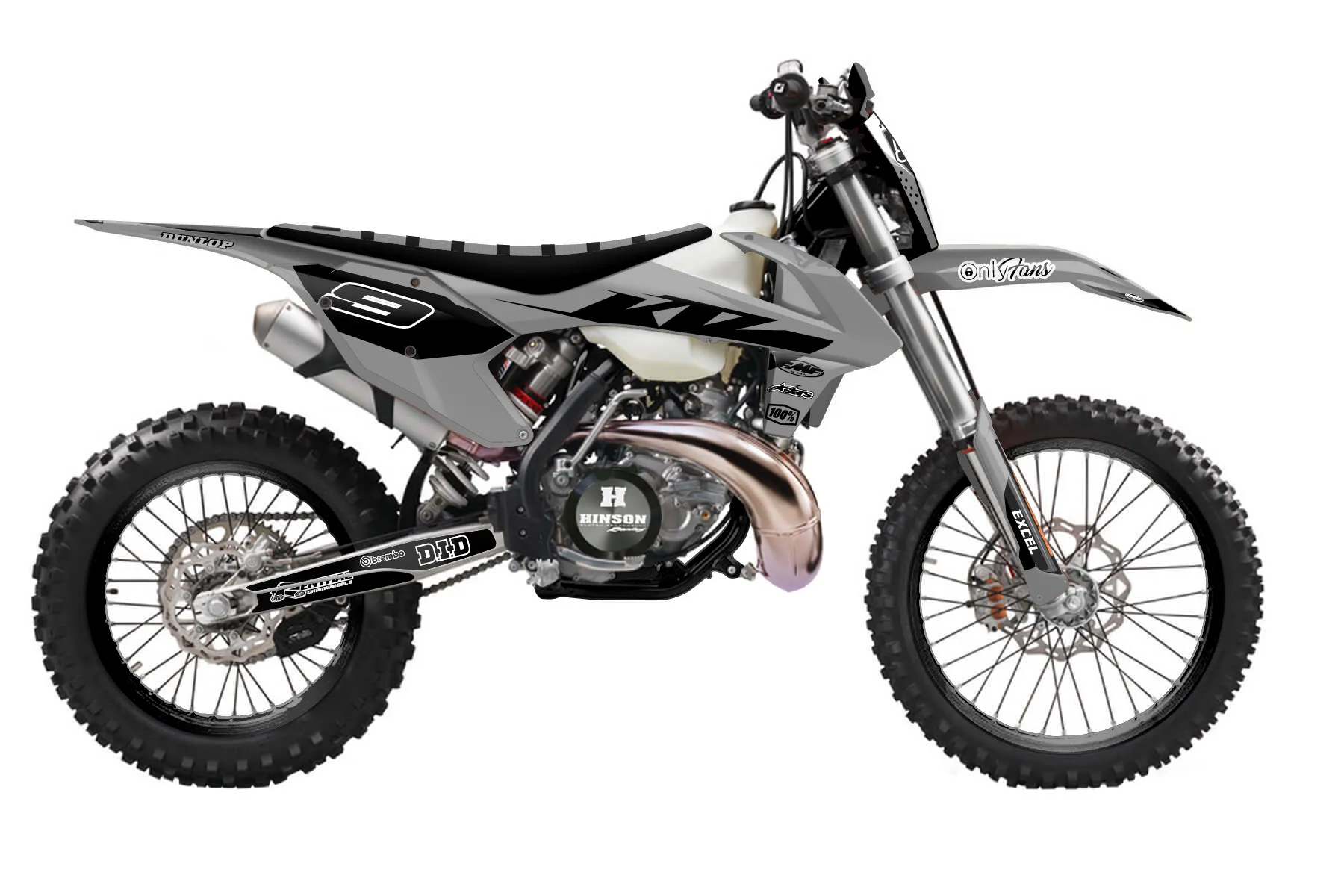 «Black n Gray» — готовый комплект графики серии Staple для KTM Enduro Graphic Kit KTM EXC 150 2017. В комплекте: графика на бак и боковые облицовки, крылья (переднее и заднее), передний щиток, номерные таблички, защита вилки. Материал: ПВХ-винил 80 мкр с холодной ламинацией 300 мкр, общая толщина 380 мкр; покрытие глянцевое или матовое на выбор. Устойчив к UV-излучению, воде, бензину и мойке высокого давления. Клей акриловый на сольвентной основе — постоянный, для гибких пластиков. На простых поверхностях монтируется без нагрева; для сложных изгибов рекомендуем фен. Этот пресет можно заказать как есть или взять за основу в конструкторе: поменять цвета, добавить стартовый номер и свой бренд. Производство — 3–5 рабочих дней, доставка по России СДЭКом или Почтой, по СНГ — курьерскими службами.