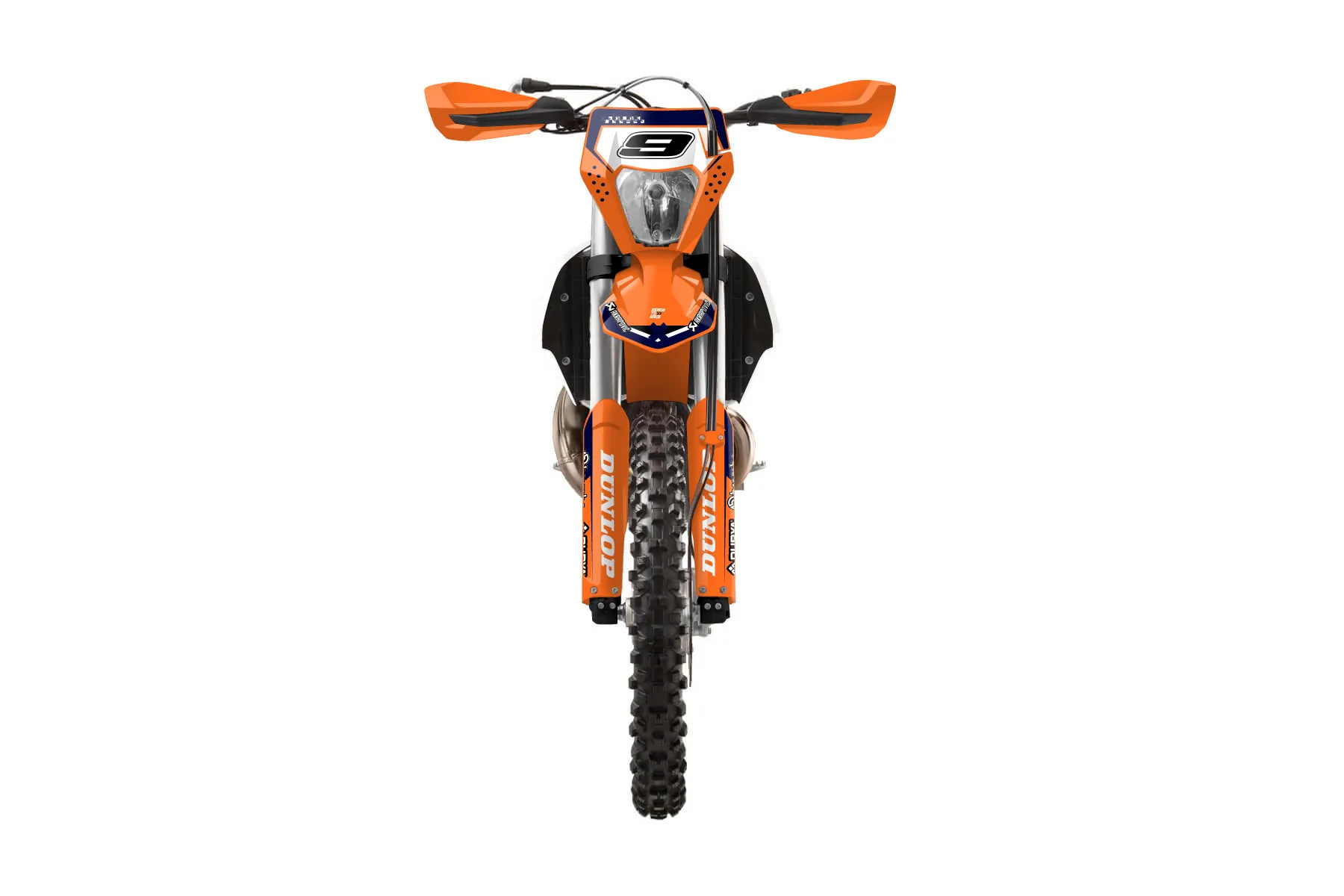 «Swoosh» — готовый комплект графики серии Staple для KTM Enduro Graphic Kit KTM EXC 150 2017. В комплекте: графика на бак и боковые облицовки, крылья (переднее и заднее), передний щиток, номерные таблички, защита вилки. Материал: ПВХ-винил 80 мкр с холодной ламинацией 300 мкр, общая толщина 380 мкр; покрытие глянцевое или матовое на выбор. Устойчив к UV-излучению, воде, бензину и мойке высокого давления. Клей акриловый на сольвентной основе — постоянный, для гибких пластиков. На простых поверхностях монтируется без нагрева; для сложных изгибов рекомендуем фен. Этот пресет можно заказать как есть или взять за основу в конструкторе: поменять цвета, добавить стартовый номер и свой бренд. Производство — 3–5 рабочих дней, доставка по России СДЭКом или Почтой, по СНГ — курьерскими службами.