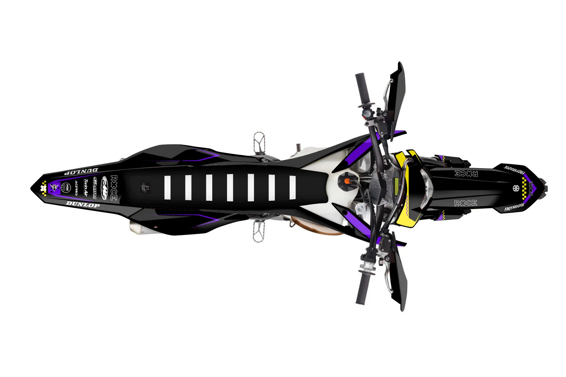 «Virtual» — готовый комплект графики серии Staple для KTM Enduro Graphic Kit KTM EXC 150 2017. В комплекте: графика на бак и боковые облицовки, крылья (переднее и заднее), передний щиток, номерные таблички, защита вилки. Материал: ПВХ-винил 80 мкр с холодной ламинацией 300 мкр, общая толщина 380 мкр; покрытие глянцевое или матовое на выбор. Устойчив к UV-излучению, воде, бензину и мойке высокого давления. Клей акриловый на сольвентной основе — постоянный, для гибких пластиков. На простых поверхностях монтируется без нагрева; для сложных изгибов рекомендуем фен. Этот пресет можно заказать как есть или взять за основу в конструкторе: поменять цвета, добавить стартовый номер и свой бренд. Производство — 3–5 рабочих дней, доставка по России СДЭКом или Почтой, по СНГ — курьерскими службами.