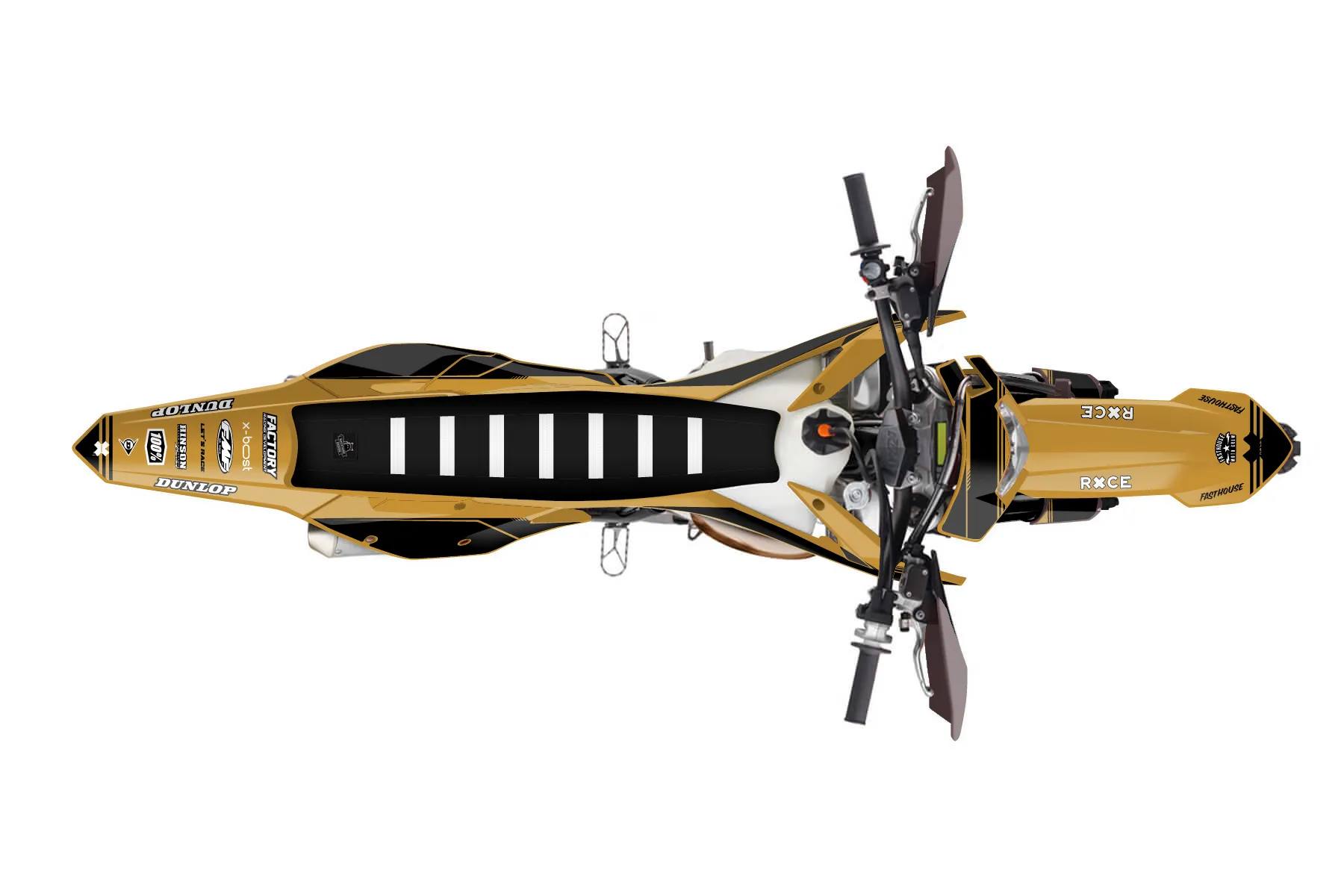 «Certain» — готовый комплект графики серии Untucked для KTM Enduro Graphic Kit KTM EXC 150 2017. В комплекте: графика на бак и боковые облицовки, крылья (переднее и заднее), передний щиток, номерные таблички, защита вилки. Материал: ПВХ-винил 80 мкр с холодной ламинацией 300 мкр, общая толщина 380 мкр; покрытие глянцевое или матовое на выбор. Устойчив к UV-излучению, воде, бензину и мойке высокого давления. Клей акриловый на сольвентной основе — постоянный, для гибких пластиков. На простых поверхностях монтируется без нагрева; для сложных изгибов рекомендуем фен. Этот пресет можно заказать как есть или взять за основу в конструкторе: поменять цвета, добавить стартовый номер и свой бренд. Производство — 3–5 рабочих дней, доставка по России СДЭКом или Почтой, по СНГ — курьерскими службами.