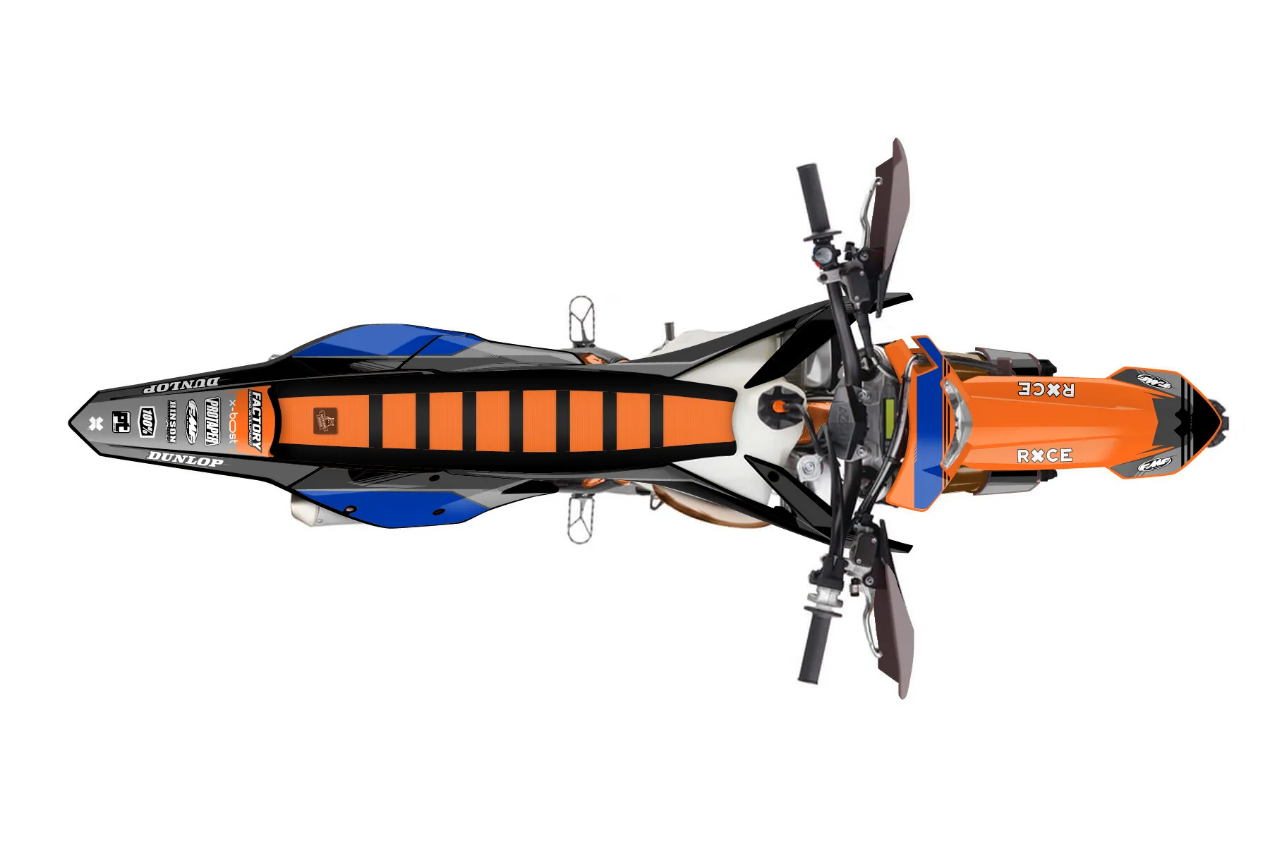 «Ultimate» — готовый комплект графики серии Untucked для KTM Enduro Graphic Kit KTM EXC 150 2017. В комплекте: графика на бак и боковые облицовки, крылья (переднее и заднее), передний щиток, номерные таблички, защита вилки. Материал: ПВХ-винил 80 мкр с холодной ламинацией 300 мкр, общая толщина 380 мкр; покрытие глянцевое или матовое на выбор. Устойчив к UV-излучению, воде, бензину и мойке высокого давления. Клей акриловый на сольвентной основе — постоянный, для гибких пластиков. На простых поверхностях монтируется без нагрева; для сложных изгибов рекомендуем фен. Этот пресет можно заказать как есть или взять за основу в конструкторе: поменять цвета, добавить стартовый номер и свой бренд. Производство — 3–5 рабочих дней, доставка по России СДЭКом или Почтой, по СНГ — курьерскими службами.