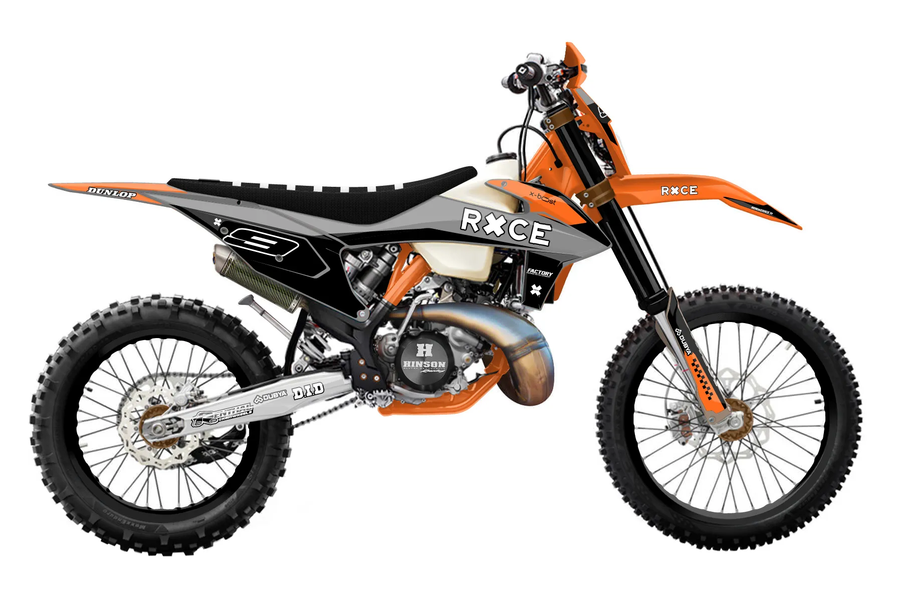 «Global» — готовый комплект графики серии Flow для KTM Enduro Graphic Kit KTM EXC 150 2020. В комплекте: графика на бак и боковые облицовки, крылья (переднее и заднее), передний щиток, номерные таблички, защита вилки. Материал: ПВХ-винил 80 мкр с холодной ламинацией 300 мкр, общая толщина 380 мкр; покрытие глянцевое или матовое на выбор. Устойчив к UV-излучению, воде, бензину и мойке высокого давления. Клей акриловый на сольвентной основе — постоянный, для гибких пластиков. На простых поверхностях монтируется без нагрева; для сложных изгибов рекомендуем фен. Этот пресет можно заказать как есть или взять за основу в конструкторе: поменять цвета, добавить стартовый номер и свой бренд. Производство — 3–5 рабочих дней, доставка по России СДЭКом или Почтой, по СНГ — курьерскими службами.