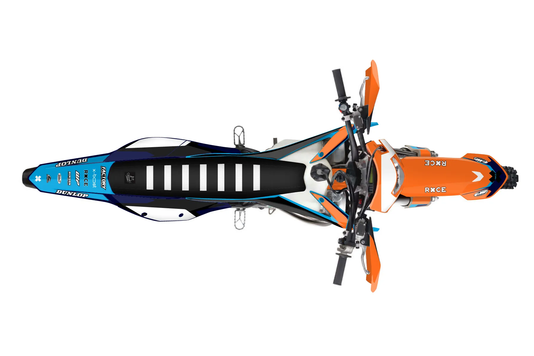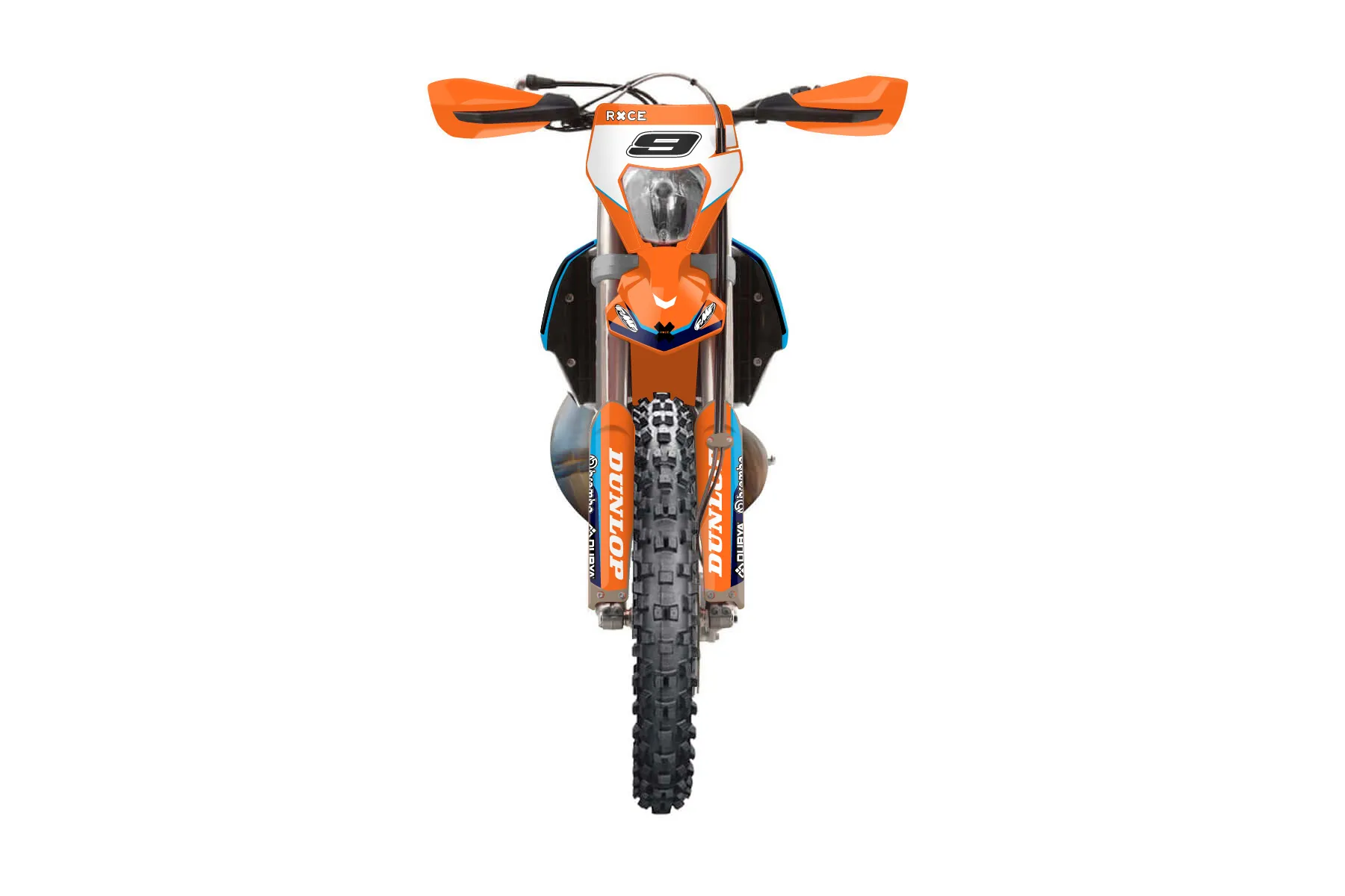 «Meta» — готовый комплект графики серии Flow для KTM Enduro Graphic Kit KTM EXC 150 2020. В комплекте: графика на бак и боковые облицовки, крылья (переднее и заднее), передний щиток, номерные таблички, защита вилки. Материал: ПВХ-винил 80 мкр с холодной ламинацией 300 мкр, общая толщина 380 мкр; покрытие глянцевое или матовое на выбор. Устойчив к UV-излучению, воде, бензину и мойке высокого давления. Клей акриловый на сольвентной основе — постоянный, для гибких пластиков. На простых поверхностях монтируется без нагрева; для сложных изгибов рекомендуем фен. Этот пресет можно заказать как есть или взять за основу в конструкторе: поменять цвета, добавить стартовый номер и свой бренд. Производство — 3–5 рабочих дней, доставка по России СДЭКом или Почтой, по СНГ — курьерскими службами.