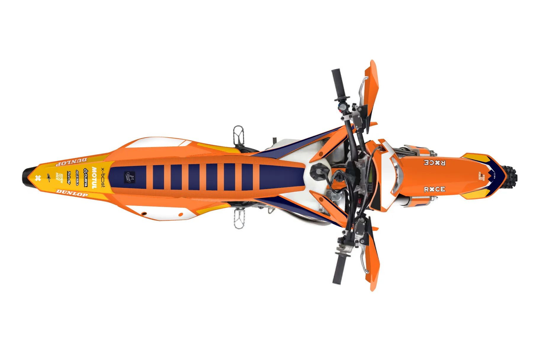 «Pixel» — готовый комплект графики серии Flow для KTM Enduro Graphic Kit KTM EXC 150 2020. В комплекте: графика на бак и боковые облицовки, крылья (переднее и заднее), передний щиток, номерные таблички, защита вилки. Материал: ПВХ-винил 80 мкр с холодной ламинацией 300 мкр, общая толщина 380 мкр; покрытие глянцевое или матовое на выбор. Устойчив к UV-излучению, воде, бензину и мойке высокого давления. Клей акриловый на сольвентной основе — постоянный, для гибких пластиков. На простых поверхностях монтируется без нагрева; для сложных изгибов рекомендуем фен. Этот пресет можно заказать как есть или взять за основу в конструкторе: поменять цвета, добавить стартовый номер и свой бренд. Производство — 3–5 рабочих дней, доставка по России СДЭКом или Почтой, по СНГ — курьерскими службами.