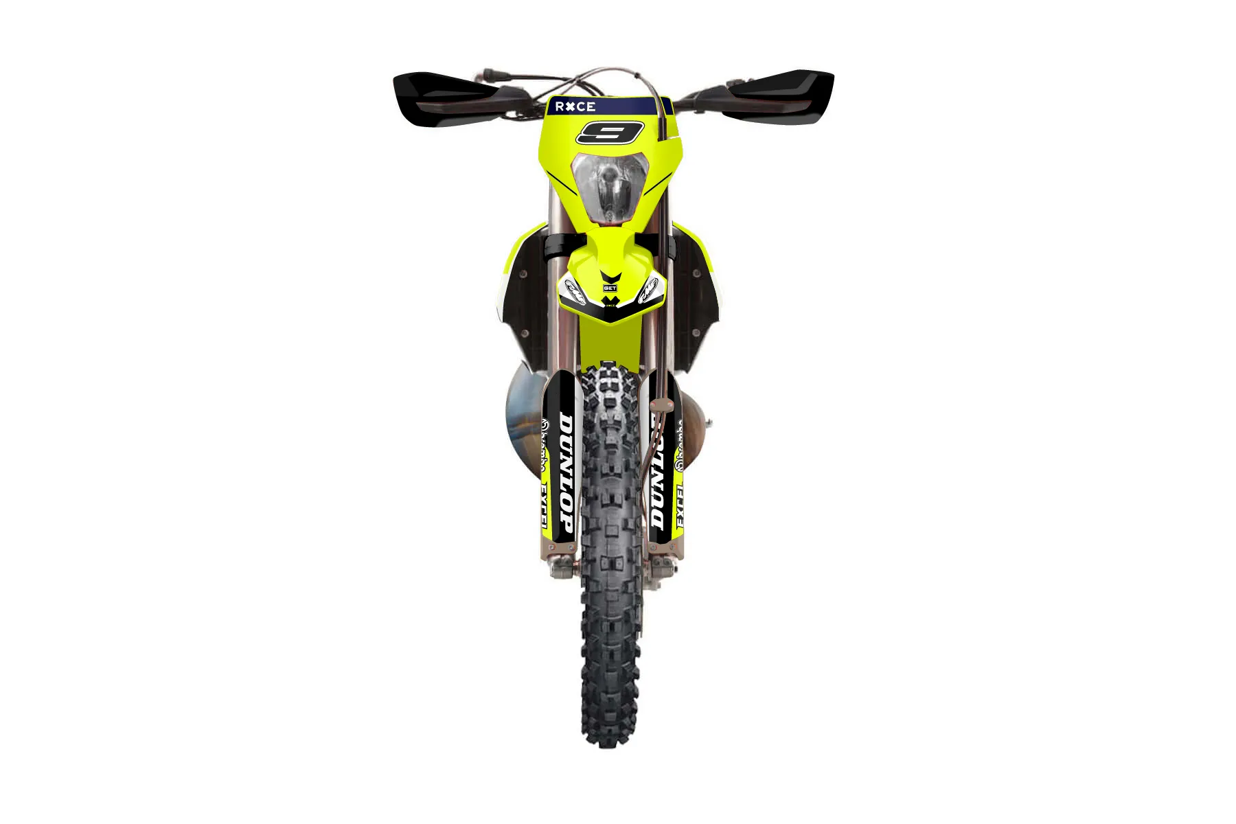 «Rise Fluo» — готовый комплект графики серии Flow для KTM Enduro Graphic Kit KTM EXC 150 2020. В комплекте: графика на бак и боковые облицовки, крылья (переднее и заднее), передний щиток, номерные таблички, защита вилки. Материал: ПВХ-винил 80 мкр с холодной ламинацией 300 мкр, общая толщина 380 мкр; покрытие глянцевое или матовое на выбор. Устойчив к UV-излучению, воде, бензину и мойке высокого давления. Клей акриловый на сольвентной основе — постоянный, для гибких пластиков. На простых поверхностях монтируется без нагрева; для сложных изгибов рекомендуем фен. Этот пресет можно заказать как есть или взять за основу в конструкторе: поменять цвета, добавить стартовый номер и свой бренд. Производство — 3–5 рабочих дней, доставка по России СДЭКом или Почтой, по СНГ — курьерскими службами.