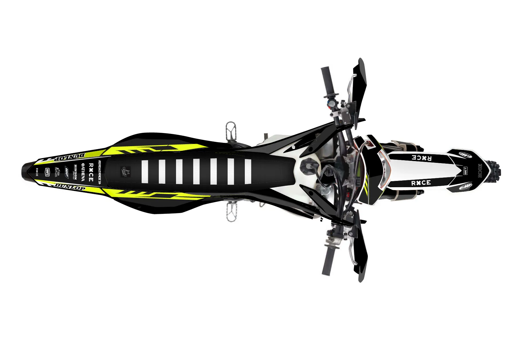 «Daze Fluo» — готовый комплект графики серии Maverick для KTM Enduro Graphic Kit KTM EXC 150 2020. В комплекте: графика на бак и боковые облицовки, крылья (переднее и заднее), передний щиток, номерные таблички, защита вилки. Материал: ПВХ-винил 80 мкр с холодной ламинацией 300 мкр, общая толщина 380 мкр; покрытие глянцевое или матовое на выбор. Устойчив к UV-излучению, воде, бензину и мойке высокого давления. Клей акриловый на сольвентной основе — постоянный, для гибких пластиков. На простых поверхностях монтируется без нагрева; для сложных изгибов рекомендуем фен. Этот пресет можно заказать как есть или взять за основу в конструкторе: поменять цвета, добавить стартовый номер и свой бренд. Производство — 3–5 рабочих дней, доставка по России СДЭКом или Почтой, по СНГ — курьерскими службами.