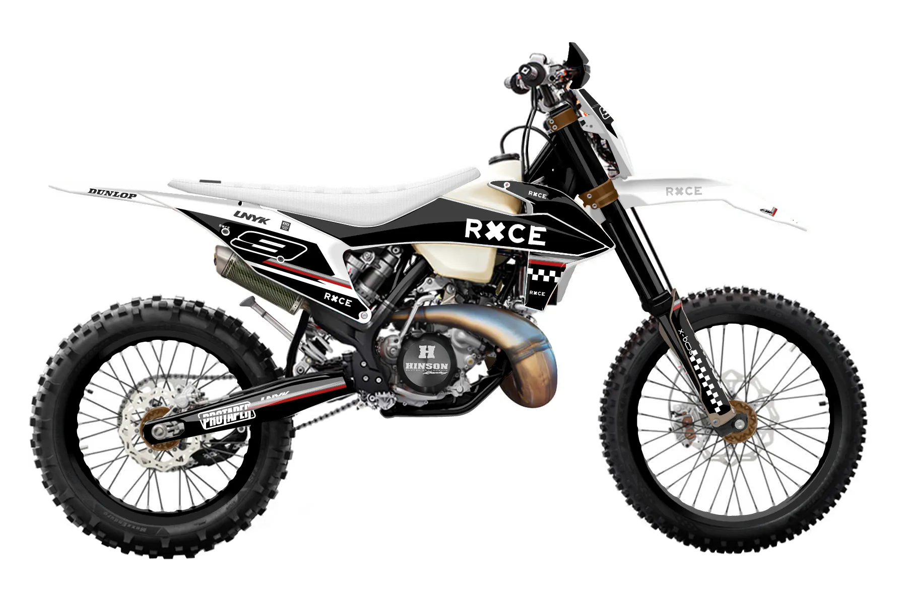 «Speedy» — готовый комплект графики серии Maverick для KTM Enduro Graphic Kit KTM EXC 150 2020. В комплекте: графика на бак и боковые облицовки, крылья (переднее и заднее), передний щиток, номерные таблички, защита вилки. Материал: ПВХ-винил 80 мкр с холодной ламинацией 300 мкр, общая толщина 380 мкр; покрытие глянцевое или матовое на выбор. Устойчив к UV-излучению, воде, бензину и мойке высокого давления. Клей акриловый на сольвентной основе — постоянный, для гибких пластиков. На простых поверхностях монтируется без нагрева; для сложных изгибов рекомендуем фен. Этот пресет можно заказать как есть или взять за основу в конструкторе: поменять цвета, добавить стартовый номер и свой бренд. Производство — 3–5 рабочих дней, доставка по России СДЭКом или Почтой, по СНГ — курьерскими службами.