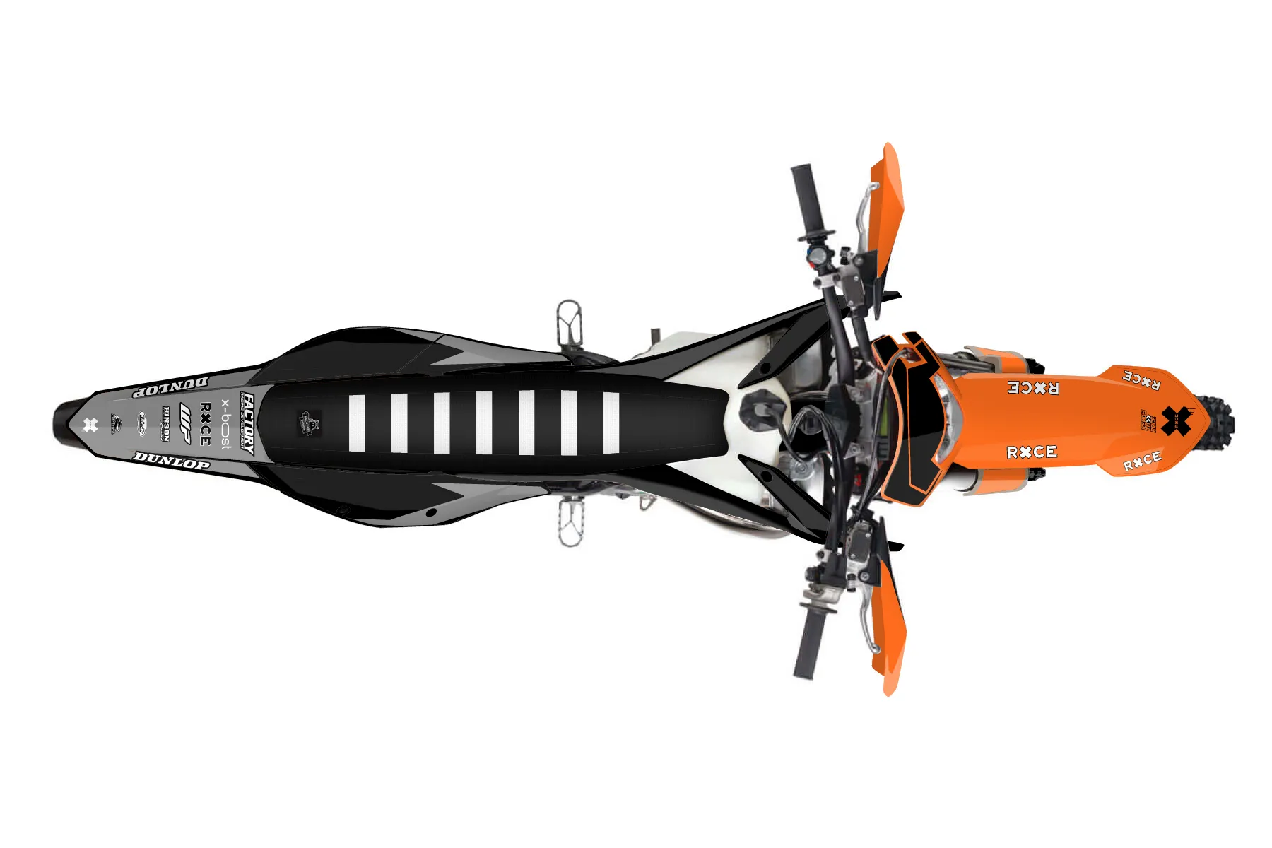 «Cape» — готовый комплект графики серии Staple для KTM Enduro Graphic Kit KTM EXC 150 2020. В комплекте: графика на бак и боковые облицовки, крылья (переднее и заднее), передний щиток, номерные таблички, защита вилки. Материал: ПВХ-винил 80 мкр с холодной ламинацией 300 мкр, общая толщина 380 мкр; покрытие глянцевое или матовое на выбор. Устойчив к UV-излучению, воде, бензину и мойке высокого давления. Клей акриловый на сольвентной основе — постоянный, для гибких пластиков. На простых поверхностях монтируется без нагрева; для сложных изгибов рекомендуем фен. Этот пресет можно заказать как есть или взять за основу в конструкторе: поменять цвета, добавить стартовый номер и свой бренд. Производство — 3–5 рабочих дней, доставка по России СДЭКом или Почтой, по СНГ — курьерскими службами.