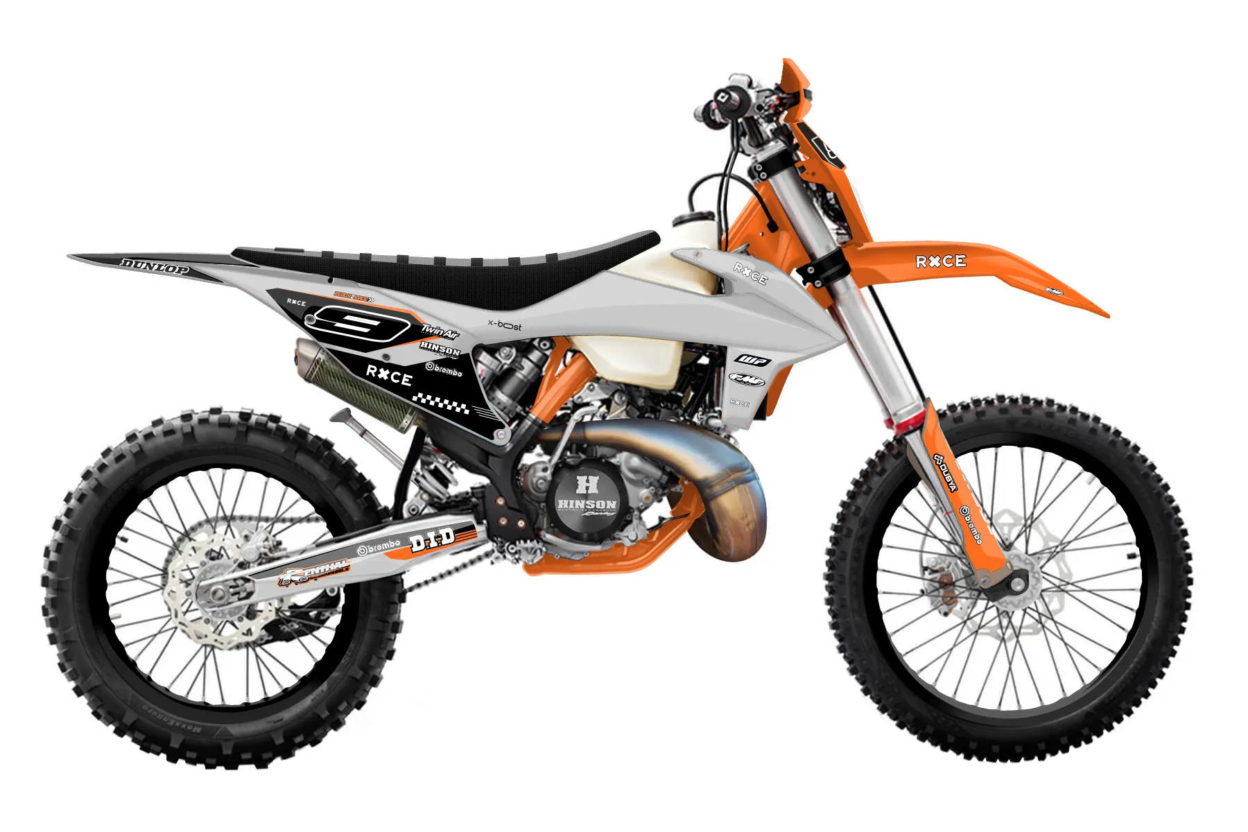 «Class» — готовый комплект графики серии Staple для KTM Enduro Graphic Kit KTM EXC 150 2020. В комплекте: графика на бак и боковые облицовки, крылья (переднее и заднее), передний щиток, номерные таблички, защита вилки. Материал: ПВХ-винил 80 мкр с холодной ламинацией 300 мкр, общая толщина 380 мкр; покрытие глянцевое или матовое на выбор. Устойчив к UV-излучению, воде, бензину и мойке высокого давления. Клей акриловый на сольвентной основе — постоянный, для гибких пластиков. На простых поверхностях монтируется без нагрева; для сложных изгибов рекомендуем фен. Этот пресет можно заказать как есть или взять за основу в конструкторе: поменять цвета, добавить стартовый номер и свой бренд. Производство — 3–5 рабочих дней, доставка по России СДЭКом или Почтой, по СНГ — курьерскими службами.