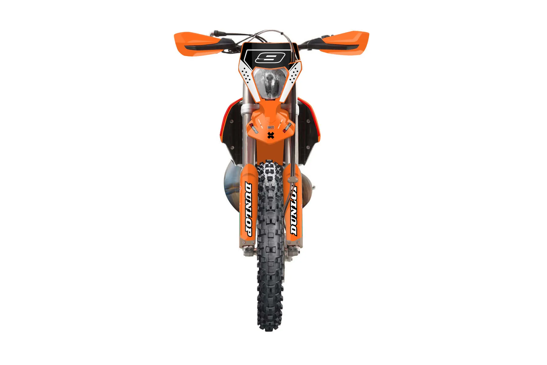 «CustomDesign» — готовый комплект графики серии Staple для KTM Enduro Graphic Kit KTM EXC 150 2020. В комплекте: графика на бак и боковые облицовки, крылья (переднее и заднее), передний щиток, номерные таблички, защита вилки. Материал: ПВХ-винил 80 мкр с холодной ламинацией 300 мкр, общая толщина 380 мкр; покрытие глянцевое или матовое на выбор. Устойчив к UV-излучению, воде, бензину и мойке высокого давления. Клей акриловый на сольвентной основе — постоянный, для гибких пластиков. На простых поверхностях монтируется без нагрева; для сложных изгибов рекомендуем фен. Этот пресет можно заказать как есть или взять за основу в конструкторе: поменять цвета, добавить стартовый номер и свой бренд. Производство — 3–5 рабочих дней, доставка по России СДЭКом или Почтой, по СНГ — курьерскими службами.