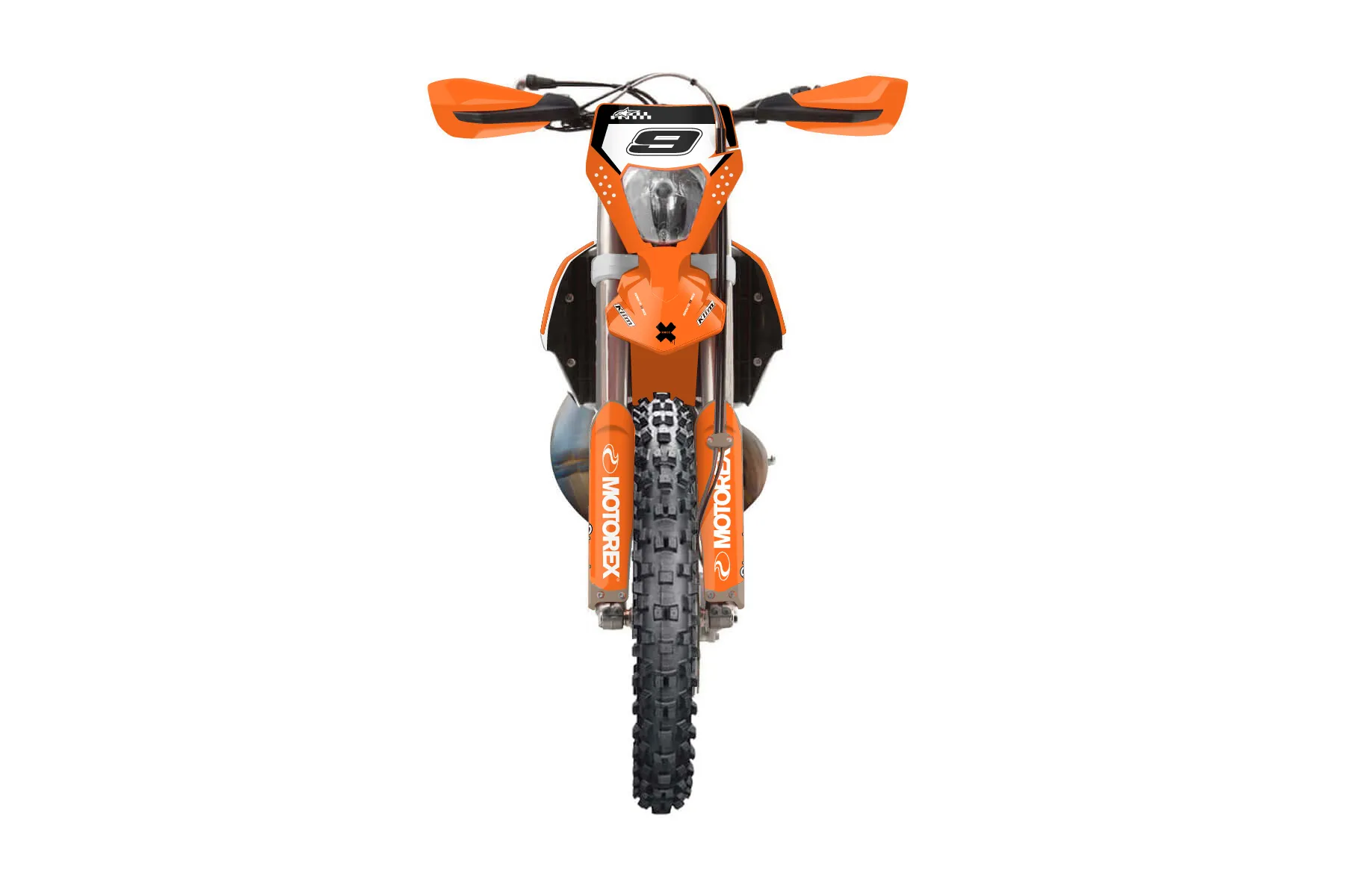 «CustomDesign» — готовый комплект графики серии Staple для KTM Enduro Graphic Kit KTM EXC 150 2020. В комплекте: графика на бак и боковые облицовки, крылья (переднее и заднее), передний щиток, номерные таблички, защита вилки. Материал: ПВХ-винил 80 мкр с холодной ламинацией 300 мкр, общая толщина 380 мкр; покрытие глянцевое или матовое на выбор. Устойчив к UV-излучению, воде, бензину и мойке высокого давления. Клей акриловый на сольвентной основе — постоянный, для гибких пластиков. На простых поверхностях монтируется без нагрева; для сложных изгибов рекомендуем фен. Этот пресет можно заказать как есть или взять за основу в конструкторе: поменять цвета, добавить стартовый номер и свой бренд. Производство — 3–5 рабочих дней, доставка по России СДЭКом или Почтой, по СНГ — курьерскими службами.