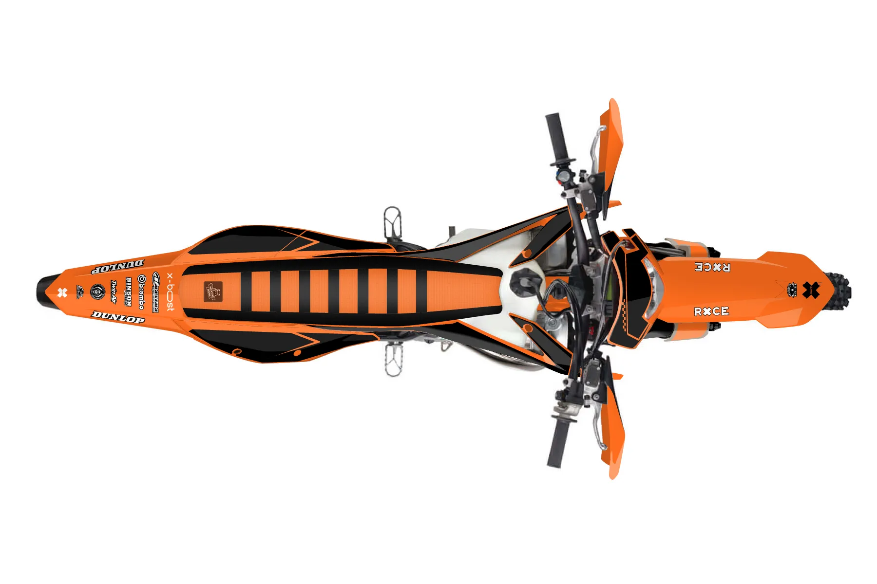 «Direction» — готовый комплект графики серии Staple для KTM Enduro Graphic Kit KTM EXC 150 2020. В комплекте: графика на бак и боковые облицовки, крылья (переднее и заднее), передний щиток, номерные таблички, защита вилки. Материал: ПВХ-винил 80 мкр с холодной ламинацией 300 мкр, общая толщина 380 мкр; покрытие глянцевое или матовое на выбор. Устойчив к UV-излучению, воде, бензину и мойке высокого давления. Клей акриловый на сольвентной основе — постоянный, для гибких пластиков. На простых поверхностях монтируется без нагрева; для сложных изгибов рекомендуем фен. Этот пресет можно заказать как есть или взять за основу в конструкторе: поменять цвета, добавить стартовый номер и свой бренд. Производство — 3–5 рабочих дней, доставка по России СДЭКом или Почтой, по СНГ — курьерскими службами.