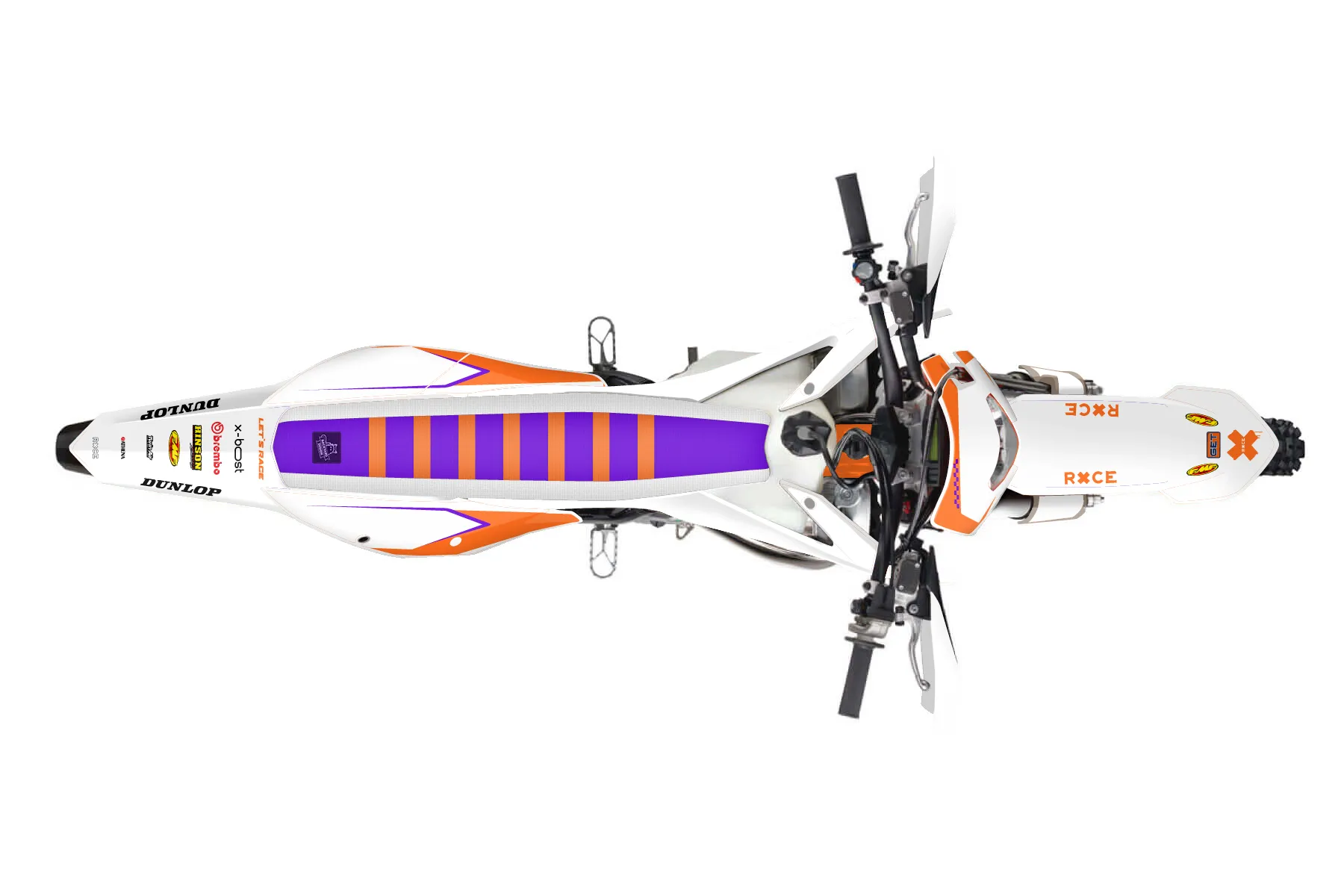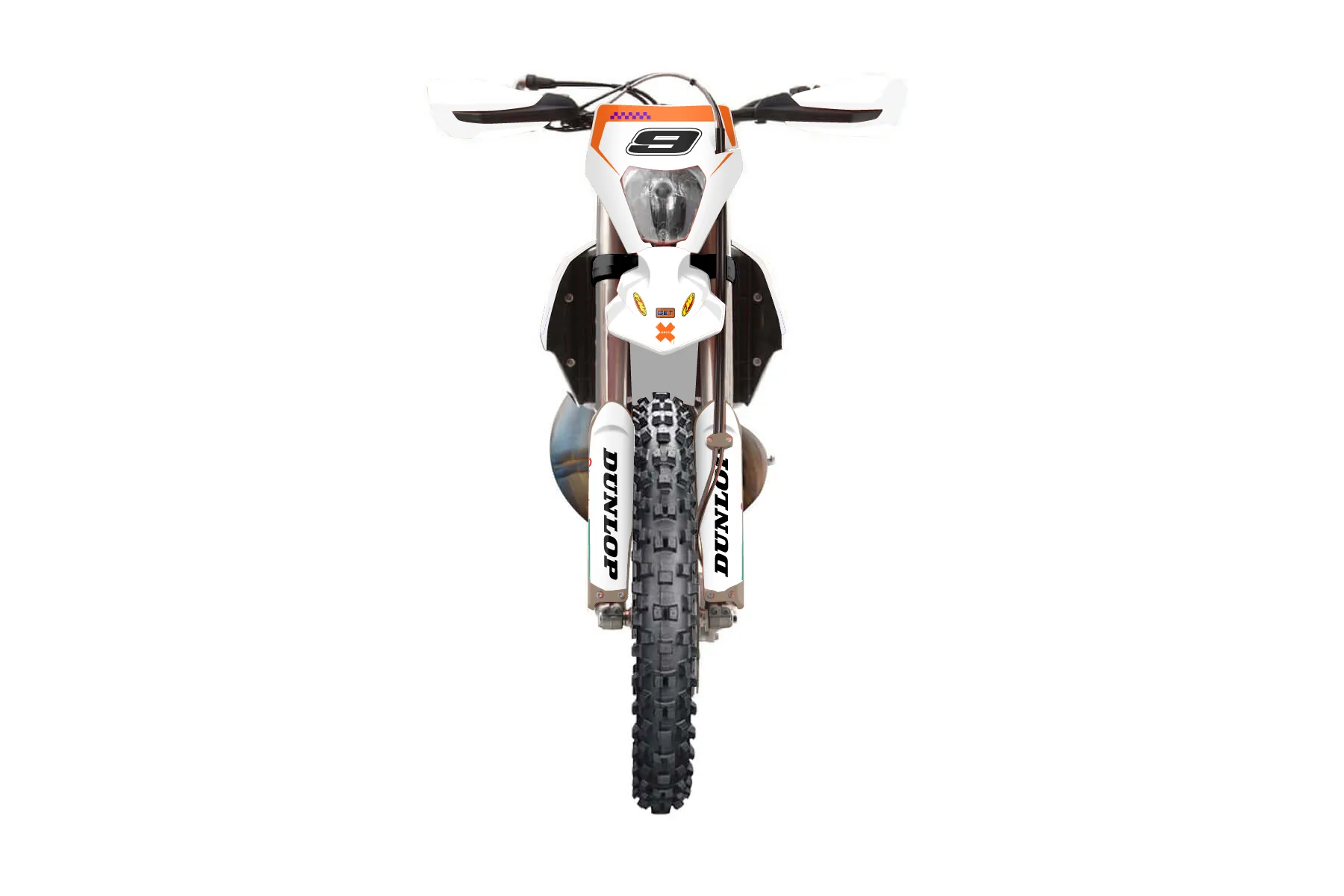 «Retro» — готовый комплект графики серии Staple для KTM Enduro Graphic Kit KTM EXC 150 2020. В комплекте: графика на бак и боковые облицовки, крылья (переднее и заднее), передний щиток, номерные таблички, защита вилки. Материал: ПВХ-винил 80 мкр с холодной ламинацией 300 мкр, общая толщина 380 мкр; покрытие глянцевое или матовое на выбор. Устойчив к UV-излучению, воде, бензину и мойке высокого давления. Клей акриловый на сольвентной основе — постоянный, для гибких пластиков. На простых поверхностях монтируется без нагрева; для сложных изгибов рекомендуем фен. Этот пресет можно заказать как есть или взять за основу в конструкторе: поменять цвета, добавить стартовый номер и свой бренд. Производство — 3–5 рабочих дней, доставка по России СДЭКом или Почтой, по СНГ — курьерскими службами.