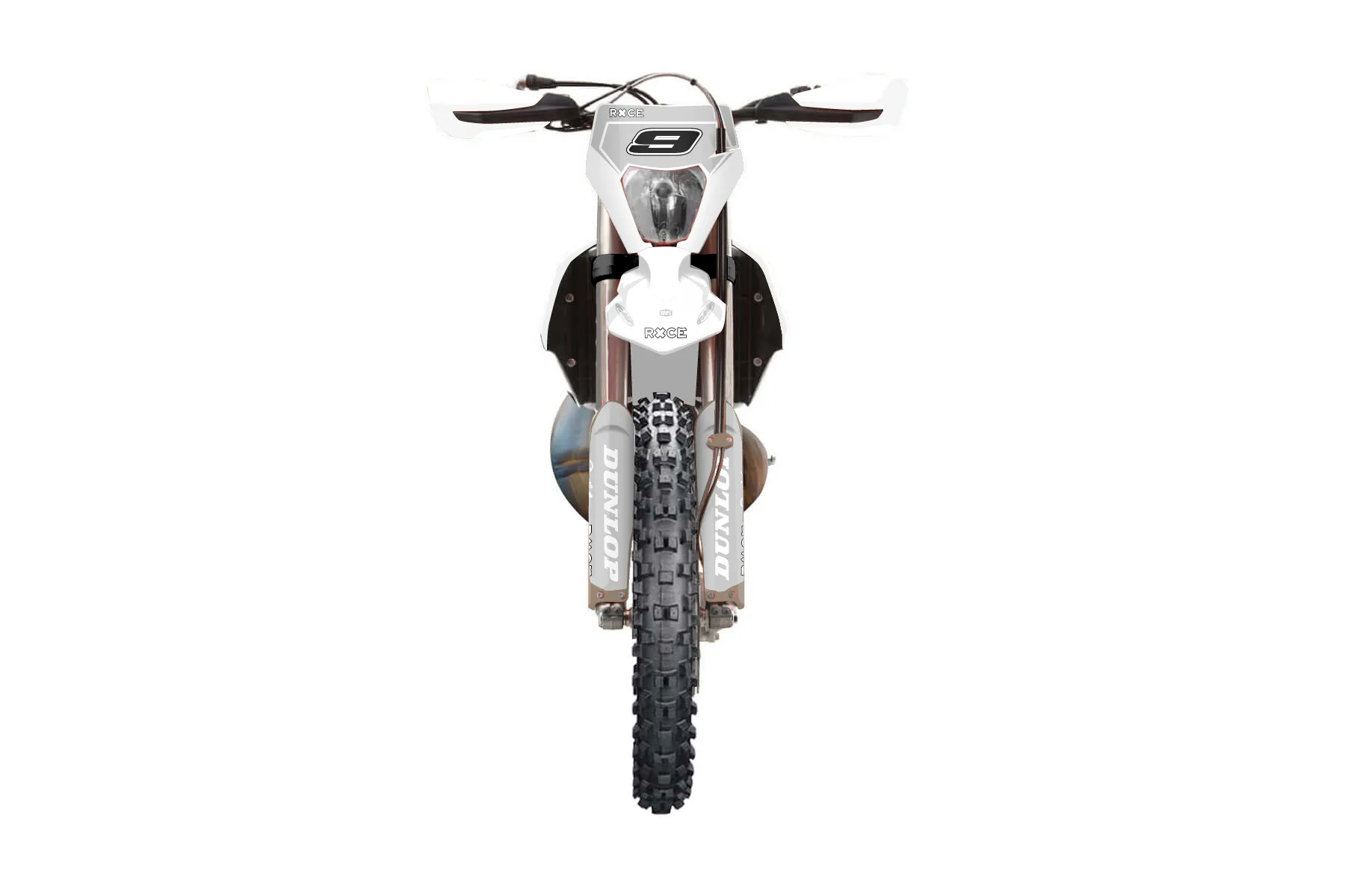 «Uphill» — готовый комплект графики серии Staple для KTM Enduro Graphic Kit KTM EXC 150 2020. В комплекте: графика на бак и боковые облицовки, крылья (переднее и заднее), передний щиток, номерные таблички, защита вилки. Материал: ПВХ-винил 80 мкр с холодной ламинацией 300 мкр, общая толщина 380 мкр; покрытие глянцевое или матовое на выбор. Устойчив к UV-излучению, воде, бензину и мойке высокого давления. Клей акриловый на сольвентной основе — постоянный, для гибких пластиков. На простых поверхностях монтируется без нагрева; для сложных изгибов рекомендуем фен. Этот пресет можно заказать как есть или взять за основу в конструкторе: поменять цвета, добавить стартовый номер и свой бренд. Производство — 3–5 рабочих дней, доставка по России СДЭКом или Почтой, по СНГ — курьерскими службами.