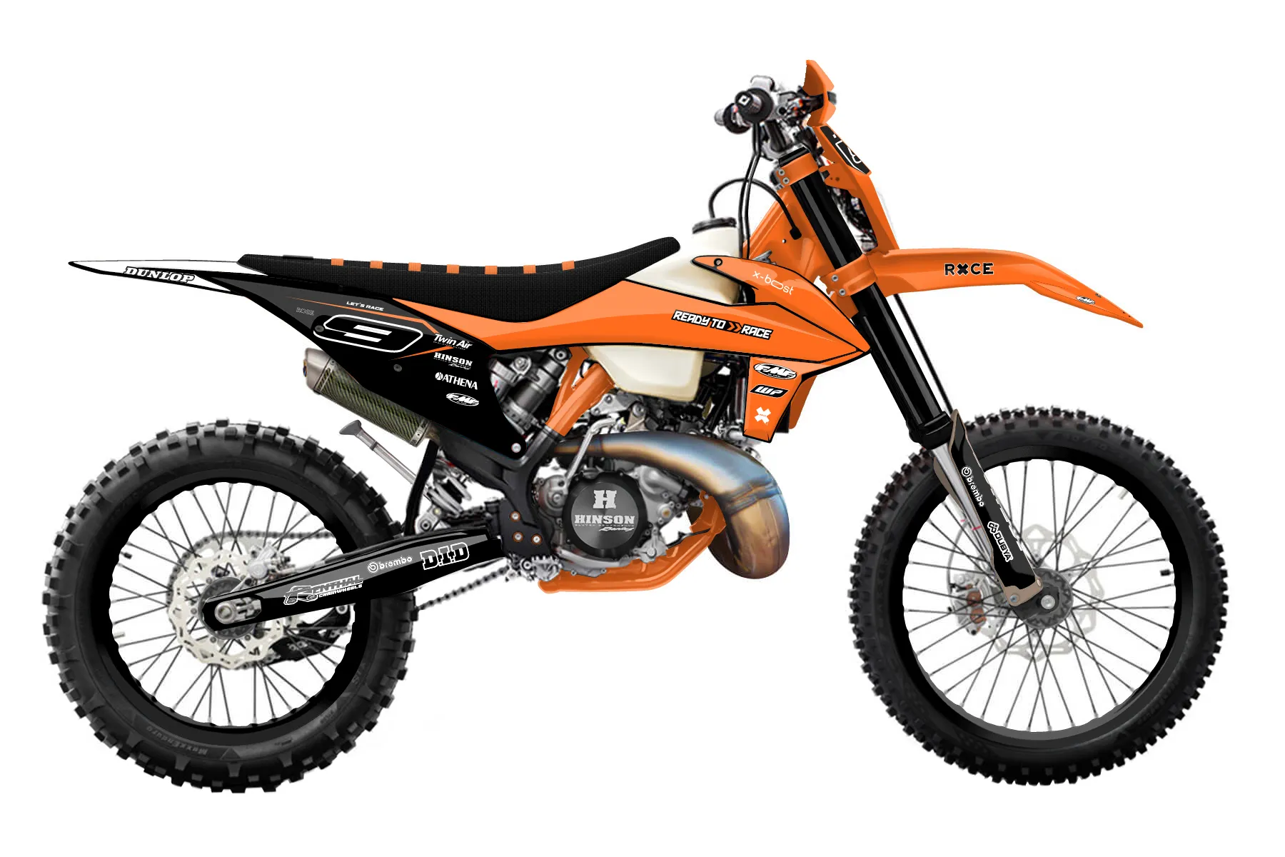 «Zebra» — готовый комплект графики серии Staple для KTM Enduro Graphic Kit KTM EXC 150 2020. В комплекте: графика на бак и боковые облицовки, крылья (переднее и заднее), передний щиток, номерные таблички, защита вилки. Материал: ПВХ-винил 80 мкр с холодной ламинацией 300 мкр, общая толщина 380 мкр; покрытие глянцевое или матовое на выбор. Устойчив к UV-излучению, воде, бензину и мойке высокого давления. Клей акриловый на сольвентной основе — постоянный, для гибких пластиков. На простых поверхностях монтируется без нагрева; для сложных изгибов рекомендуем фен. Этот пресет можно заказать как есть или взять за основу в конструкторе: поменять цвета, добавить стартовый номер и свой бренд. Производство — 3–5 рабочих дней, доставка по России СДЭКом или Почтой, по СНГ — курьерскими службами.
