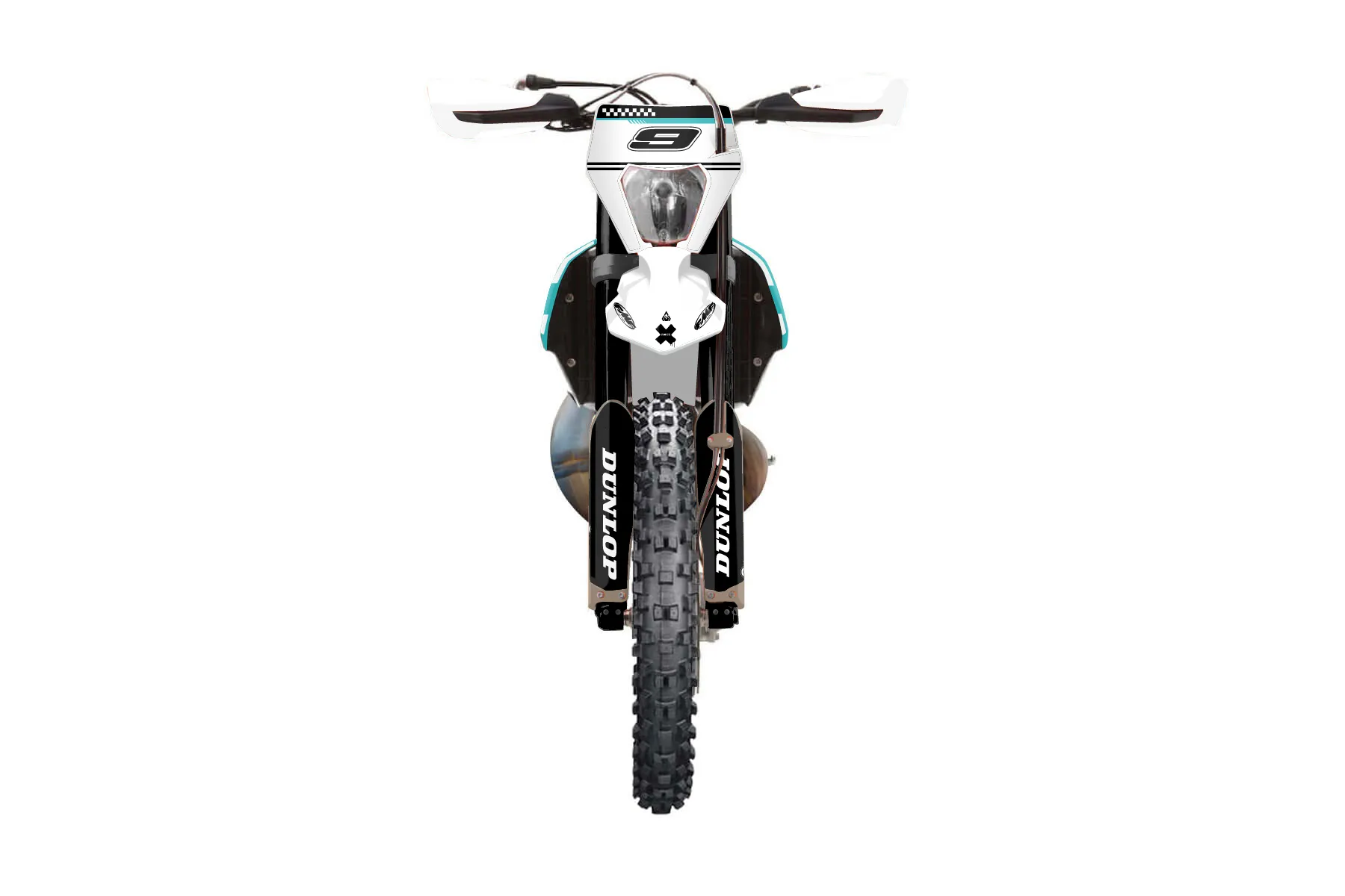 «Dynamic» — готовый комплект графики серии Untucked для KTM Enduro Graphic Kit KTM EXC 150 2020. В комплекте: графика на бак и боковые облицовки, крылья (переднее и заднее), передний щиток, номерные таблички, защита вилки. Материал: ПВХ-винил 80 мкр с холодной ламинацией 300 мкр, общая толщина 380 мкр; покрытие глянцевое или матовое на выбор. Устойчив к UV-излучению, воде, бензину и мойке высокого давления. Клей акриловый на сольвентной основе — постоянный, для гибких пластиков. На простых поверхностях монтируется без нагрева; для сложных изгибов рекомендуем фен. Этот пресет можно заказать как есть или взять за основу в конструкторе: поменять цвета, добавить стартовый номер и свой бренд. Производство — 3–5 рабочих дней, доставка по России СДЭКом или Почтой, по СНГ — курьерскими службами.