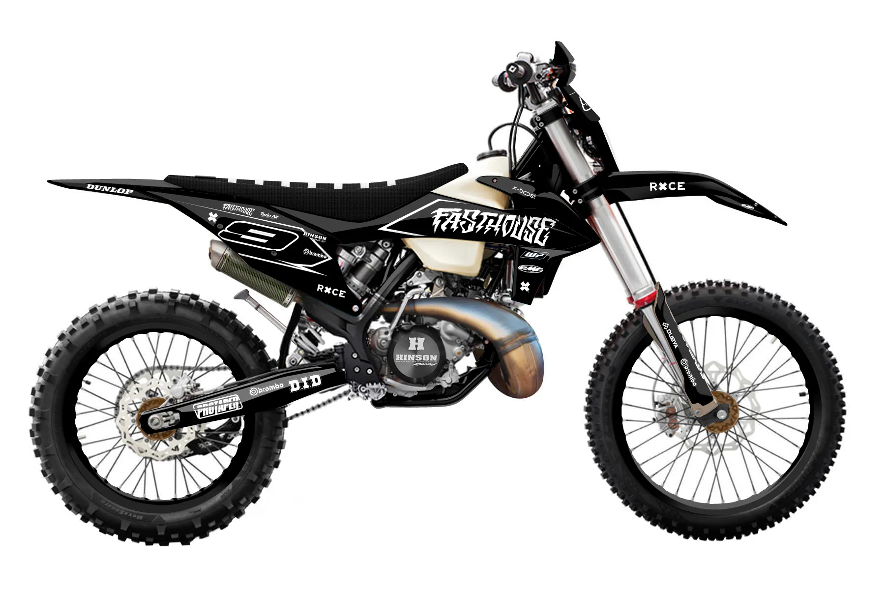 «Speedhouse» — готовый комплект графики серии Untucked для KTM Enduro Graphic Kit KTM EXC 150 2020. В комплекте: графика на бак и боковые облицовки, крылья (переднее и заднее), передний щиток, номерные таблички, защита вилки. Материал: ПВХ-винил 80 мкр с холодной ламинацией 300 мкр, общая толщина 380 мкр; покрытие глянцевое или матовое на выбор. Устойчив к UV-излучению, воде, бензину и мойке высокого давления. Клей акриловый на сольвентной основе — постоянный, для гибких пластиков. На простых поверхностях монтируется без нагрева; для сложных изгибов рекомендуем фен. Этот пресет можно заказать как есть или взять за основу в конструкторе: поменять цвета, добавить стартовый номер и свой бренд. Производство — 3–5 рабочих дней, доставка по России СДЭКом или Почтой, по СНГ — курьерскими службами.
