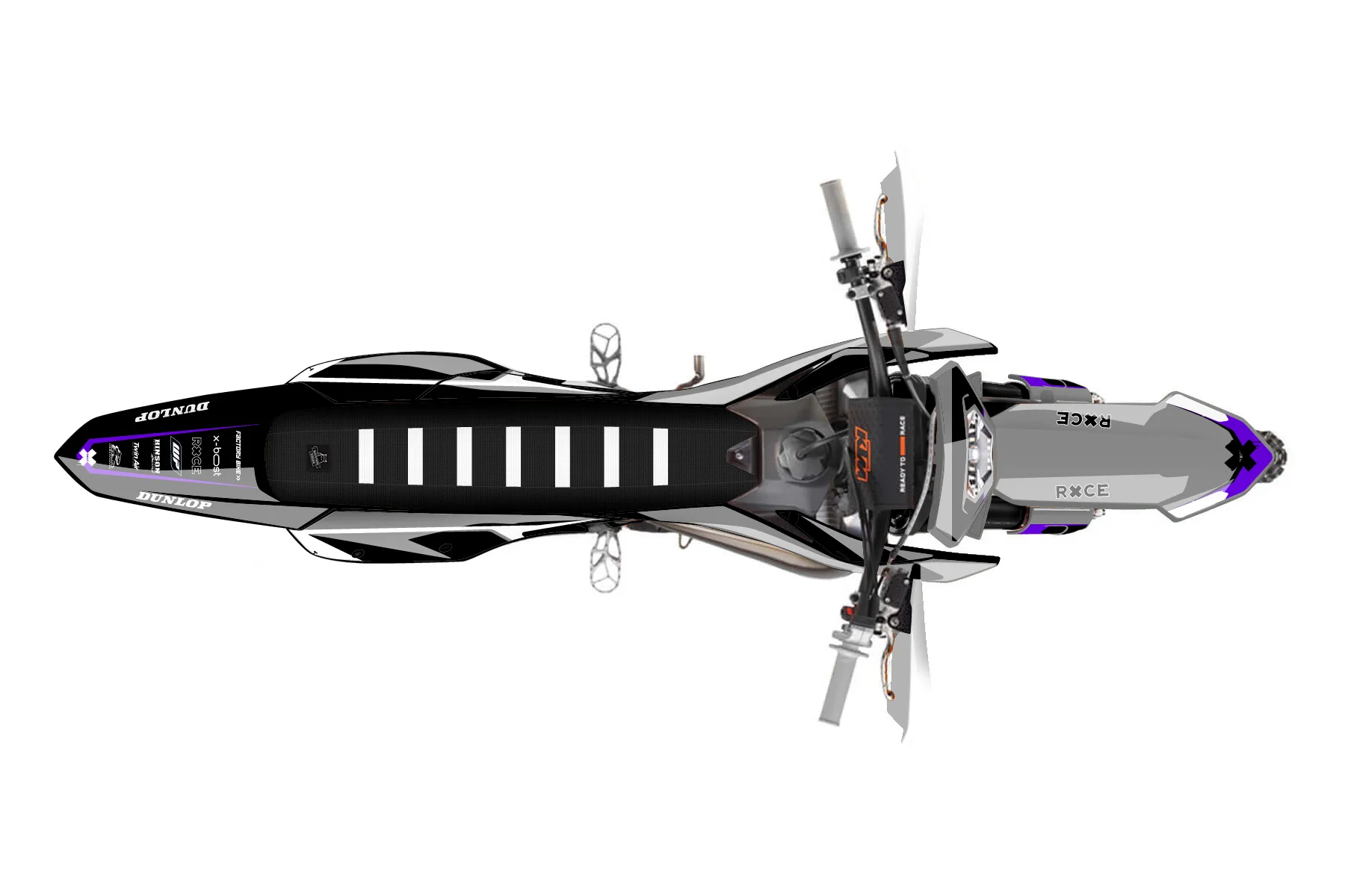 «Cyber Pirate» — готовый комплект графики серии Flow для KTM Enduro Graphic Kit KTM EXC 150 2024. В комплекте: графика на бак и боковые облицовки, крылья (переднее и заднее), передний щиток, номерные таблички, защита вилки. Материал: ПВХ-винил 80 мкр с холодной ламинацией 300 мкр, общая толщина 380 мкр; покрытие глянцевое или матовое на выбор. Устойчив к UV-излучению, воде, бензину и мойке высокого давления. Клей акриловый на сольвентной основе — постоянный, для гибких пластиков. На простых поверхностях монтируется без нагрева; для сложных изгибов рекомендуем фен. Этот пресет можно заказать как есть или взять за основу в конструкторе: поменять цвета, добавить стартовый номер и свой бренд. Производство — 3–5 рабочих дней, доставка по России СДЭКом или Почтой, по СНГ — курьерскими службами.