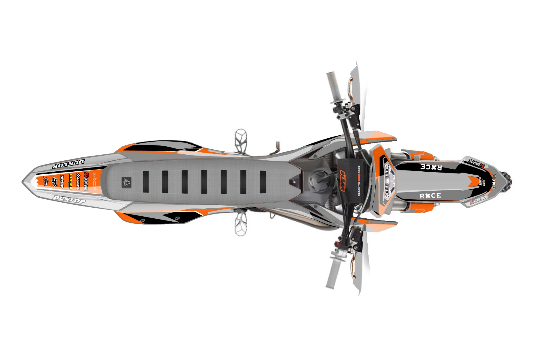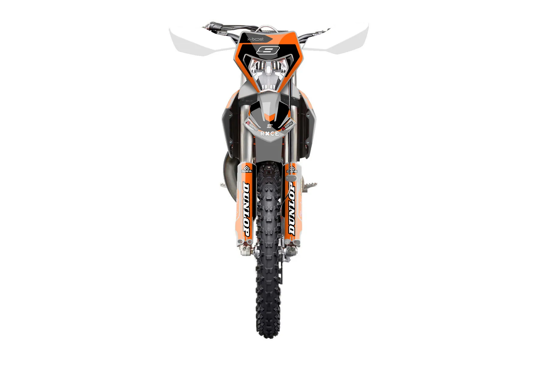 «KTM 150» — готовый комплект графики серии Flow для KTM Enduro Graphic Kit KTM EXC 150 2024. В комплекте: графика на бак и боковые облицовки, крылья (переднее и заднее), передний щиток, номерные таблички, защита вилки. Материал: ПВХ-винил 80 мкр с холодной ламинацией 300 мкр, общая толщина 380 мкр; покрытие глянцевое или матовое на выбор. Устойчив к UV-излучению, воде, бензину и мойке высокого давления. Клей акриловый на сольвентной основе — постоянный, для гибких пластиков. На простых поверхностях монтируется без нагрева; для сложных изгибов рекомендуем фен. Этот пресет можно заказать как есть или взять за основу в конструкторе: поменять цвета, добавить стартовый номер и свой бренд. Производство — 3–5 рабочих дней, доставка по России СДЭКом или Почтой, по СНГ — курьерскими службами.