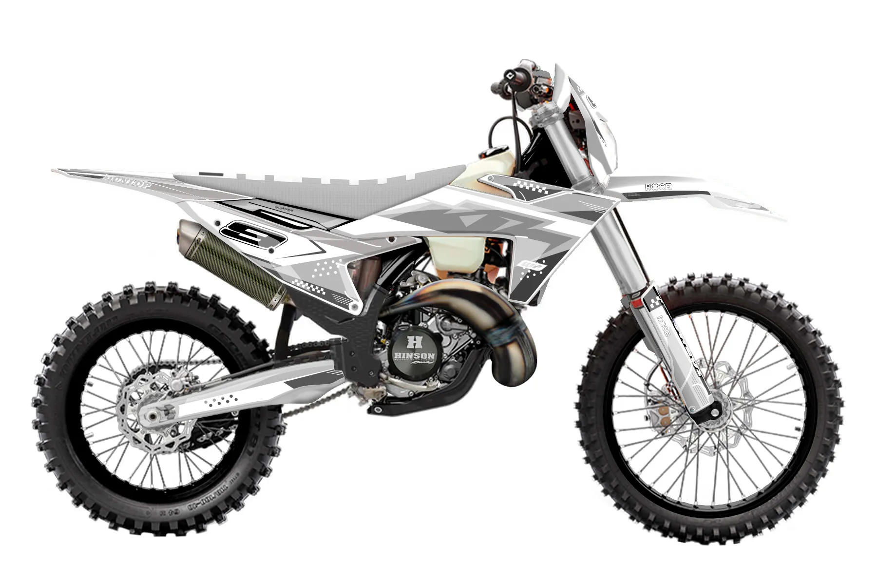 «artic» — готовый комплект графики серии Staple для KTM Enduro Graphic Kit KTM EXC 150 2024. В комплекте: графика на бак и боковые облицовки, крылья (переднее и заднее), передний щиток, номерные таблички, защита вилки. Материал: ПВХ-винил 80 мкр с холодной ламинацией 300 мкр, общая толщина 380 мкр; покрытие глянцевое или матовое на выбор. Устойчив к UV-излучению, воде, бензину и мойке высокого давления. Клей акриловый на сольвентной основе — постоянный, для гибких пластиков. На простых поверхностях монтируется без нагрева; для сложных изгибов рекомендуем фен. Этот пресет можно заказать как есть или взять за основу в конструкторе: поменять цвета, добавить стартовый номер и свой бренд. Производство — 3–5 рабочих дней, доставка по России СДЭКом или Почтой, по СНГ — курьерскими службами.