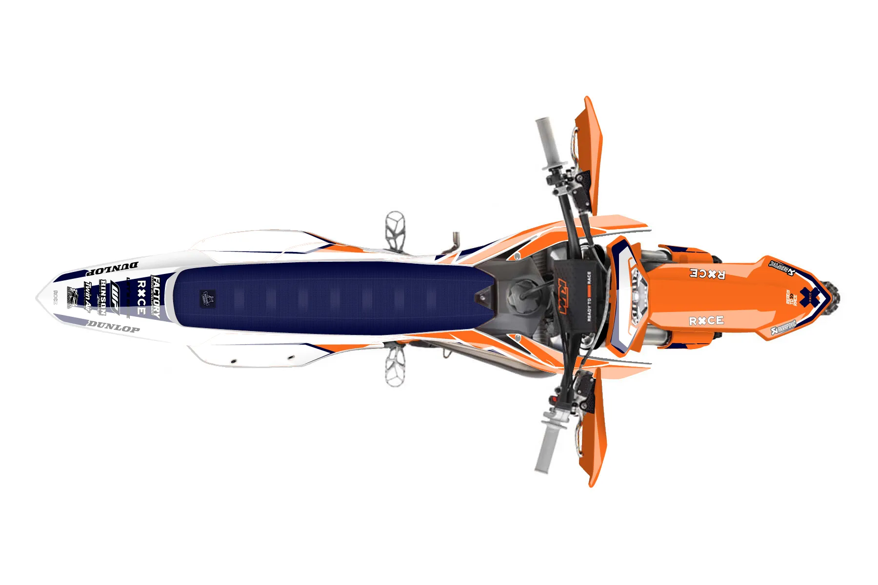 «Swoosh» — готовый комплект графики серии Staple для KTM Enduro Graphic Kit KTM EXC 150 2024. В комплекте: графика на бак и боковые облицовки, крылья (переднее и заднее), передний щиток, номерные таблички, защита вилки. Материал: ПВХ-винил 80 мкр с холодной ламинацией 300 мкр, общая толщина 380 мкр; покрытие глянцевое или матовое на выбор. Устойчив к UV-излучению, воде, бензину и мойке высокого давления. Клей акриловый на сольвентной основе — постоянный, для гибких пластиков. На простых поверхностях монтируется без нагрева; для сложных изгибов рекомендуем фен. Этот пресет можно заказать как есть или взять за основу в конструкторе: поменять цвета, добавить стартовый номер и свой бренд. Производство — 3–5 рабочих дней, доставка по России СДЭКом или Почтой, по СНГ — курьерскими службами.