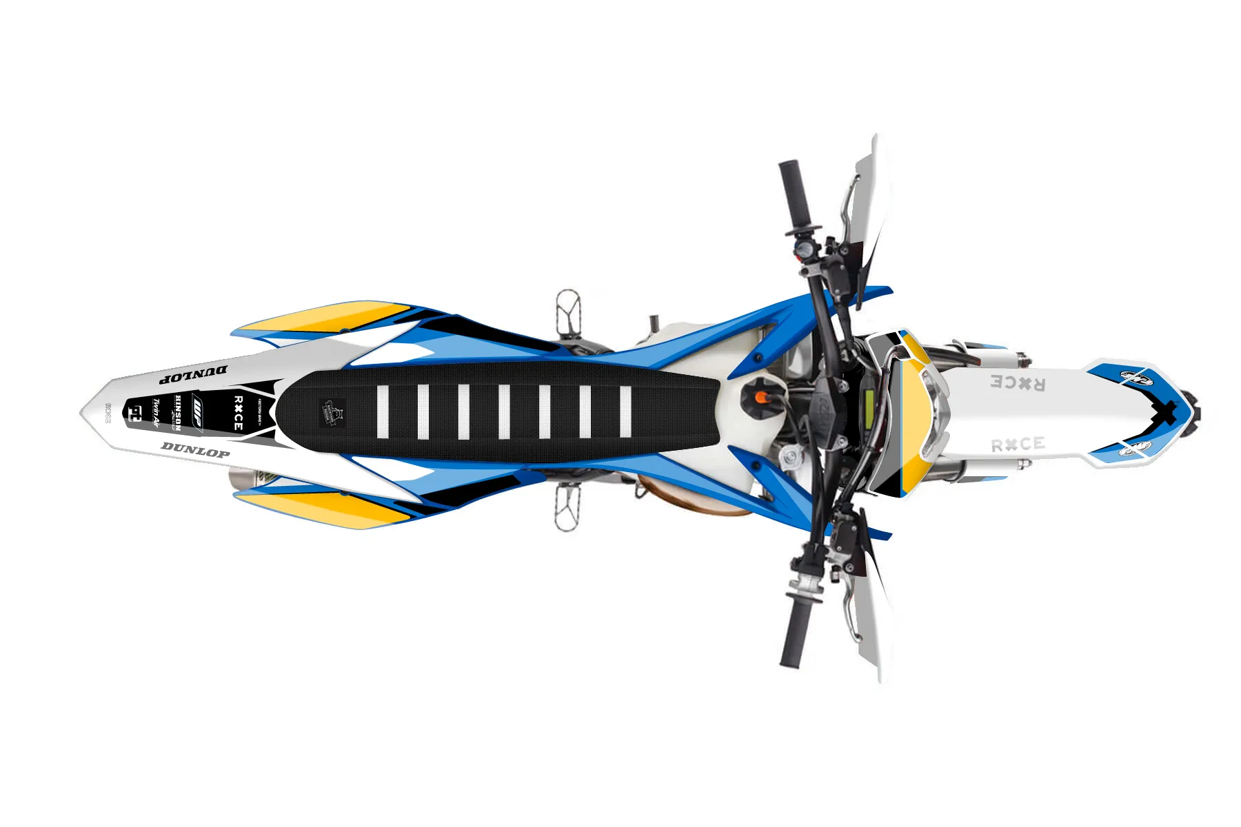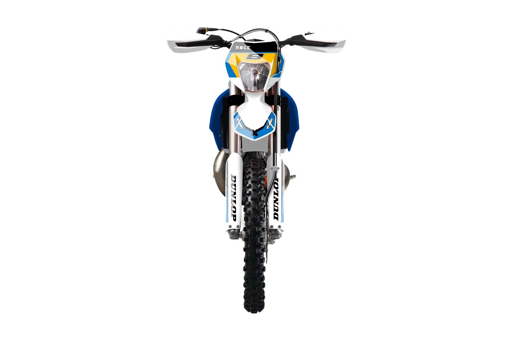 «All-Star» — готовый комплект графики серии Flow для KTM Enduro Graphic Kit KTM EXC 250 2014. В комплекте: графика на бак и боковые облицовки, крылья (переднее и заднее), передний щиток, номерные таблички, защита вилки. Материал: ПВХ-винил 80 мкр с холодной ламинацией 300 мкр, общая толщина 380 мкр; покрытие глянцевое или матовое на выбор. Устойчив к UV-излучению, воде, бензину и мойке высокого давления. Клей акриловый на сольвентной основе — постоянный, для гибких пластиков. На простых поверхностях монтируется без нагрева; для сложных изгибов рекомендуем фен. Этот пресет можно заказать как есть или взять за основу в конструкторе: поменять цвета, добавить стартовый номер и свой бренд. Производство — 3–5 рабочих дней, доставка по России СДЭКом или Почтой, по СНГ — курьерскими службами.