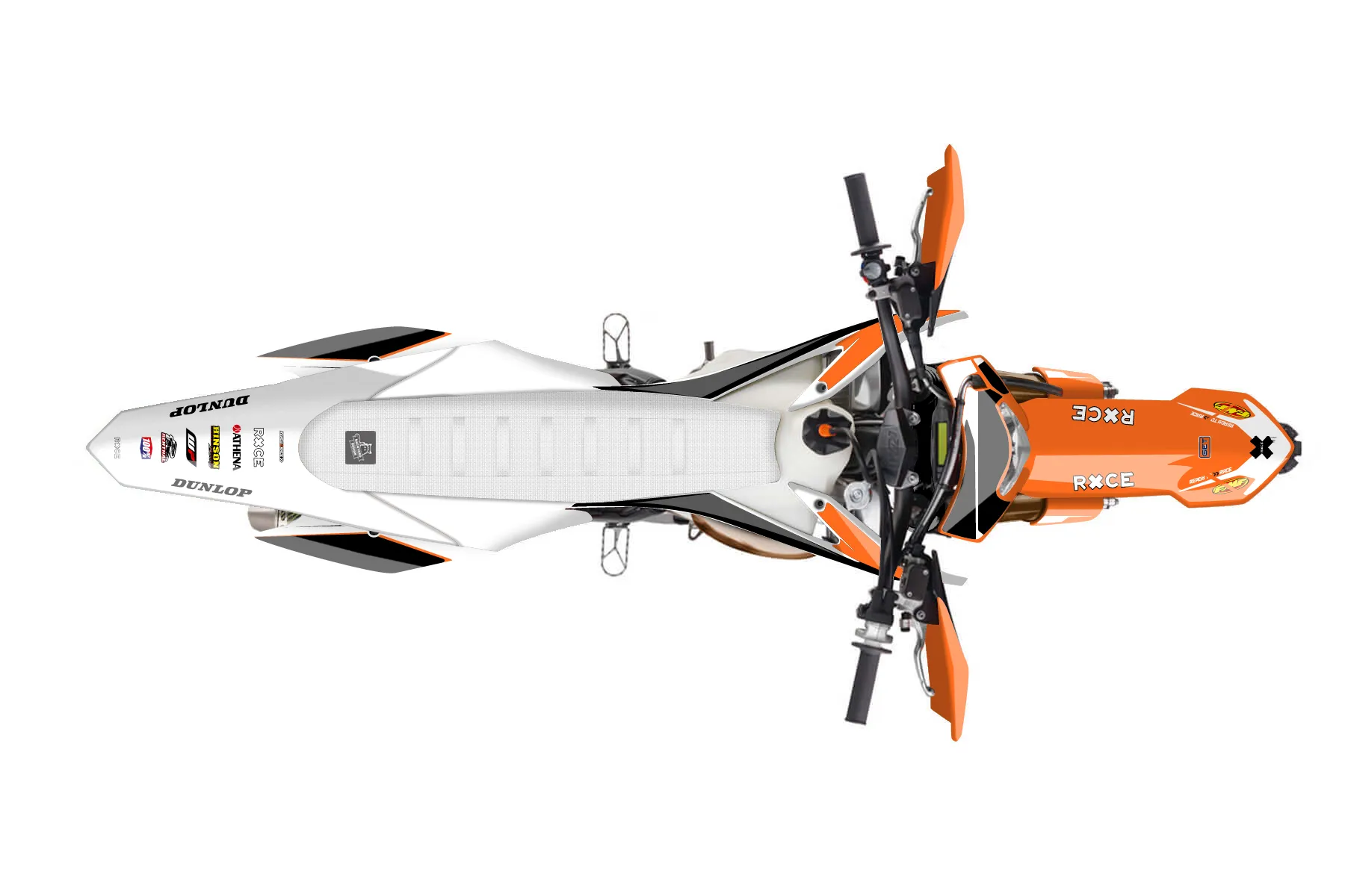 «Alpha» — готовый комплект графики серии Flow для KTM Enduro Graphic Kit KTM EXC 250 2014. В комплекте: графика на бак и боковые облицовки, крылья (переднее и заднее), передний щиток, номерные таблички, защита вилки. Материал: ПВХ-винил 80 мкр с холодной ламинацией 300 мкр, общая толщина 380 мкр; покрытие глянцевое или матовое на выбор. Устойчив к UV-излучению, воде, бензину и мойке высокого давления. Клей акриловый на сольвентной основе — постоянный, для гибких пластиков. На простых поверхностях монтируется без нагрева; для сложных изгибов рекомендуем фен. Этот пресет можно заказать как есть или взять за основу в конструкторе: поменять цвета, добавить стартовый номер и свой бренд. Производство — 3–5 рабочих дней, доставка по России СДЭКом или Почтой, по СНГ — курьерскими службами.