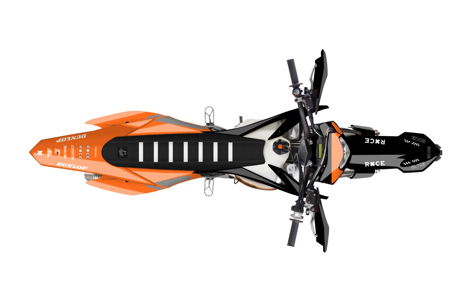 «Beyond» — готовый комплект графики серии Flow для KTM Enduro Graphic Kit KTM EXC 250 2014. В комплекте: графика на бак и боковые облицовки, крылья (переднее и заднее), передний щиток, номерные таблички, защита вилки. Материал: ПВХ-винил 80 мкр с холодной ламинацией 300 мкр, общая толщина 380 мкр; покрытие глянцевое или матовое на выбор. Устойчив к UV-излучению, воде, бензину и мойке высокого давления. Клей акриловый на сольвентной основе — постоянный, для гибких пластиков. На простых поверхностях монтируется без нагрева; для сложных изгибов рекомендуем фен. Этот пресет можно заказать как есть или взять за основу в конструкторе: поменять цвета, добавить стартовый номер и свой бренд. Производство — 3–5 рабочих дней, доставка по России СДЭКом или Почтой, по СНГ — курьерскими службами.