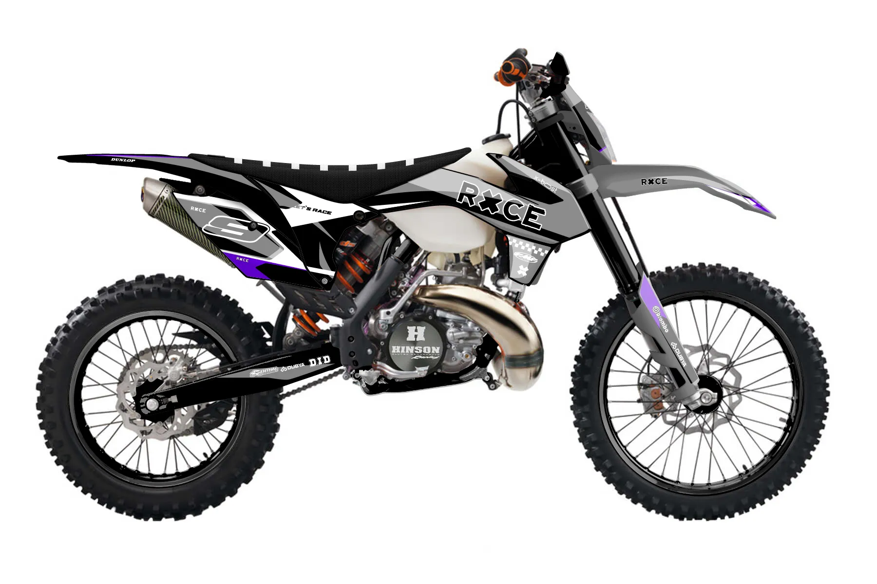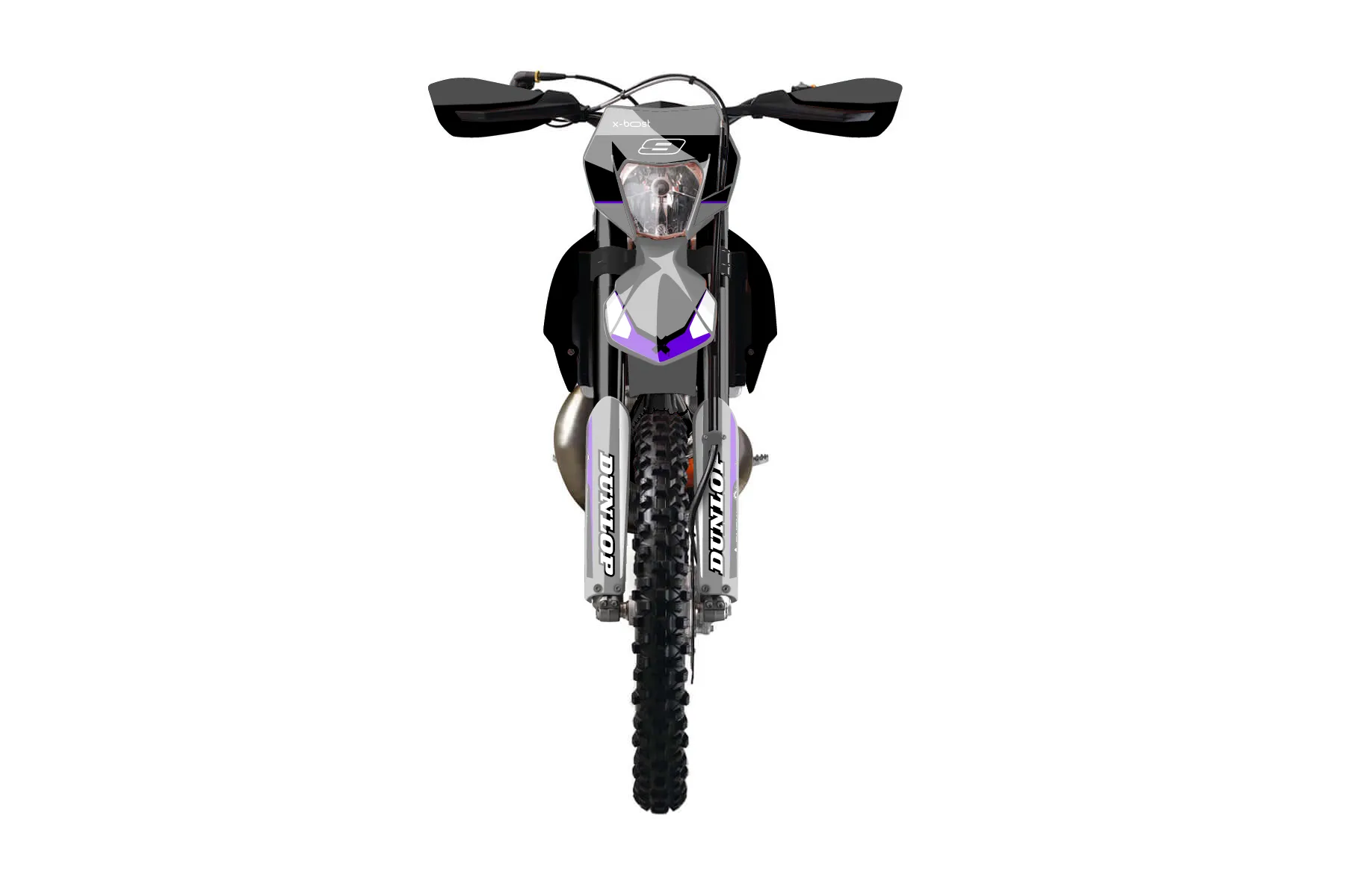 «Cyber Pirate» — готовый комплект графики серии Flow для KTM Enduro Graphic Kit KTM EXC 250 2014. В комплекте: графика на бак и боковые облицовки, крылья (переднее и заднее), передний щиток, номерные таблички, защита вилки. Материал: ПВХ-винил 80 мкр с холодной ламинацией 300 мкр, общая толщина 380 мкр; покрытие глянцевое или матовое на выбор. Устойчив к UV-излучению, воде, бензину и мойке высокого давления. Клей акриловый на сольвентной основе — постоянный, для гибких пластиков. На простых поверхностях монтируется без нагрева; для сложных изгибов рекомендуем фен. Этот пресет можно заказать как есть или взять за основу в конструкторе: поменять цвета, добавить стартовый номер и свой бренд. Производство — 3–5 рабочих дней, доставка по России СДЭКом или Почтой, по СНГ — курьерскими службами.