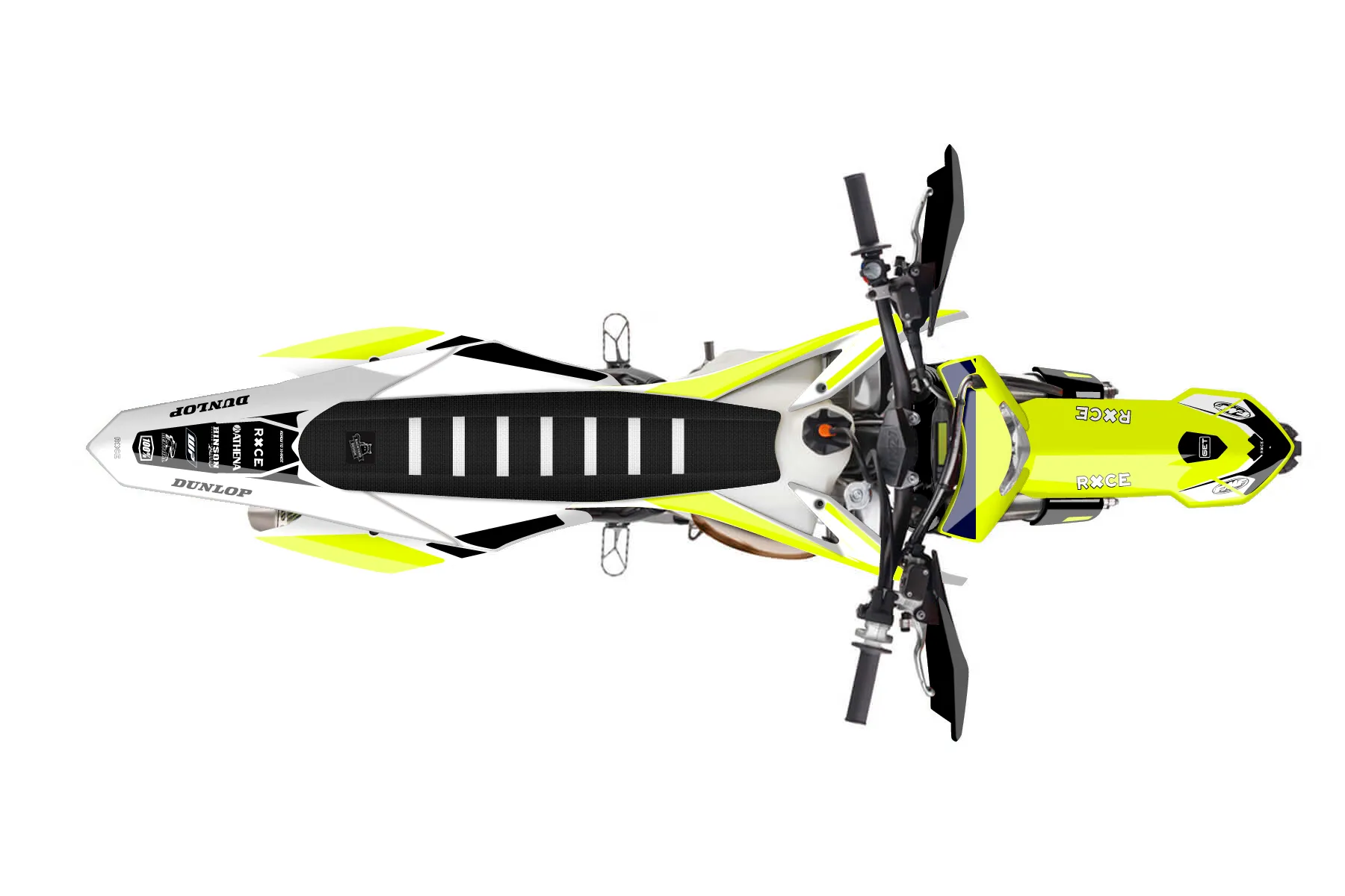 «Rise Fluo» — готовый комплект графики серии Flow для KTM Enduro Graphic Kit KTM EXC 250 2014. В комплекте: графика на бак и боковые облицовки, крылья (переднее и заднее), передний щиток, номерные таблички, защита вилки. Материал: ПВХ-винил 80 мкр с холодной ламинацией 300 мкр, общая толщина 380 мкр; покрытие глянцевое или матовое на выбор. Устойчив к UV-излучению, воде, бензину и мойке высокого давления. Клей акриловый на сольвентной основе — постоянный, для гибких пластиков. На простых поверхностях монтируется без нагрева; для сложных изгибов рекомендуем фен. Этот пресет можно заказать как есть или взять за основу в конструкторе: поменять цвета, добавить стартовый номер и свой бренд. Производство — 3–5 рабочих дней, доставка по России СДЭКом или Почтой, по СНГ — курьерскими службами.