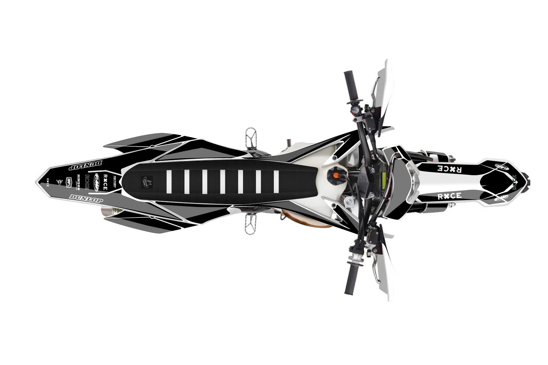 «Vibes» — готовый комплект графики серии Flow для KTM Enduro Graphic Kit KTM EXC 250 2014. В комплекте: графика на бак и боковые облицовки, крылья (переднее и заднее), передний щиток, номерные таблички, защита вилки. Материал: ПВХ-винил 80 мкр с холодной ламинацией 300 мкр, общая толщина 380 мкр; покрытие глянцевое или матовое на выбор. Устойчив к UV-излучению, воде, бензину и мойке высокого давления. Клей акриловый на сольвентной основе — постоянный, для гибких пластиков. На простых поверхностях монтируется без нагрева; для сложных изгибов рекомендуем фен. Этот пресет можно заказать как есть или взять за основу в конструкторе: поменять цвета, добавить стартовый номер и свой бренд. Производство — 3–5 рабочих дней, доставка по России СДЭКом или Почтой, по СНГ — курьерскими службами.