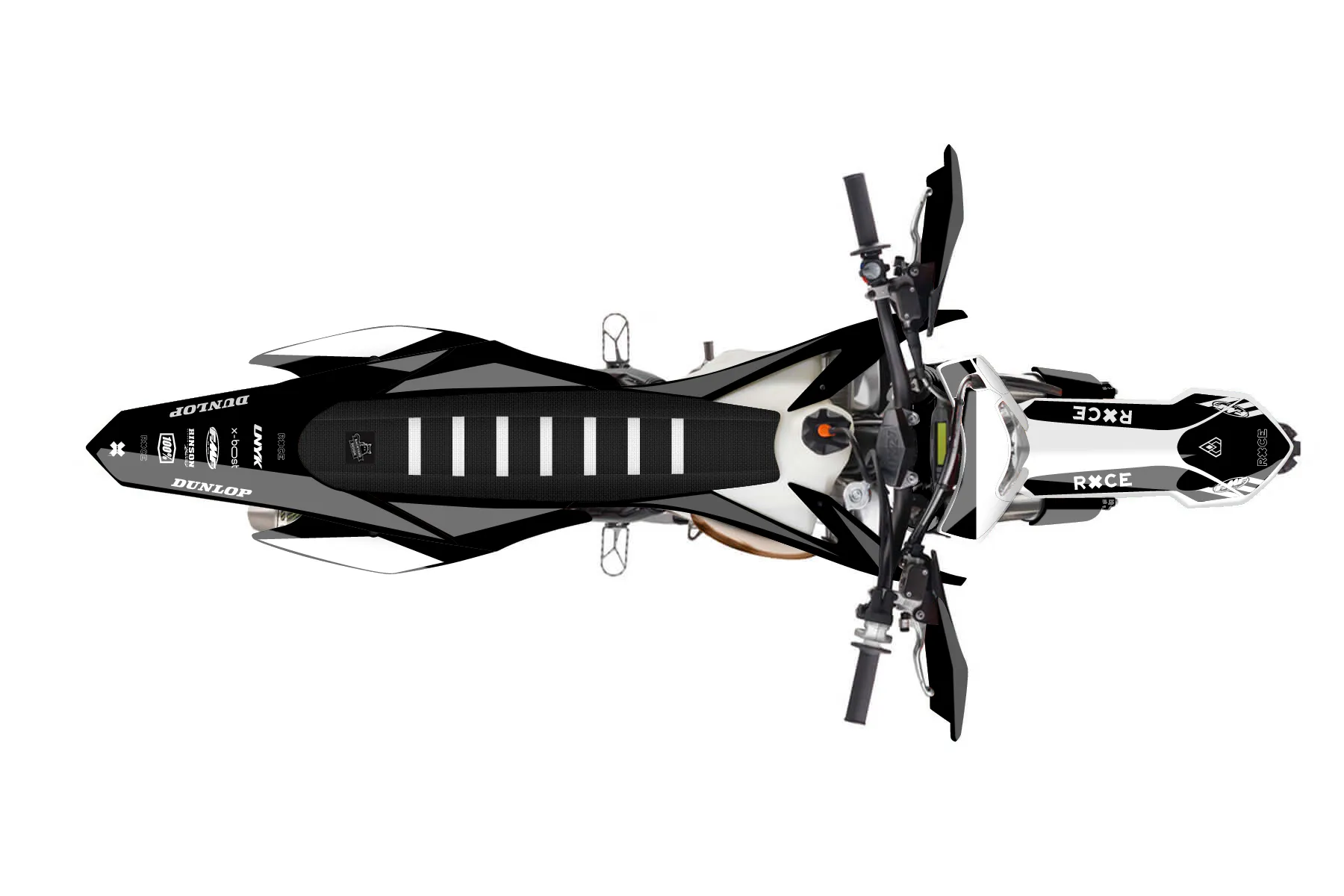 «DeCore» — готовый комплект графики серии Maverick для KTM Enduro Graphic Kit KTM EXC 250 2014. В комплекте: графика на бак и боковые облицовки, крылья (переднее и заднее), передний щиток, номерные таблички, защита вилки. Материал: ПВХ-винил 80 мкр с холодной ламинацией 300 мкр, общая толщина 380 мкр; покрытие глянцевое или матовое на выбор. Устойчив к UV-излучению, воде, бензину и мойке высокого давления. Клей акриловый на сольвентной основе — постоянный, для гибких пластиков. На простых поверхностях монтируется без нагрева; для сложных изгибов рекомендуем фен. Этот пресет можно заказать как есть или взять за основу в конструкторе: поменять цвета, добавить стартовый номер и свой бренд. Производство — 3–5 рабочих дней, доставка по России СДЭКом или Почтой, по СНГ — курьерскими службами.