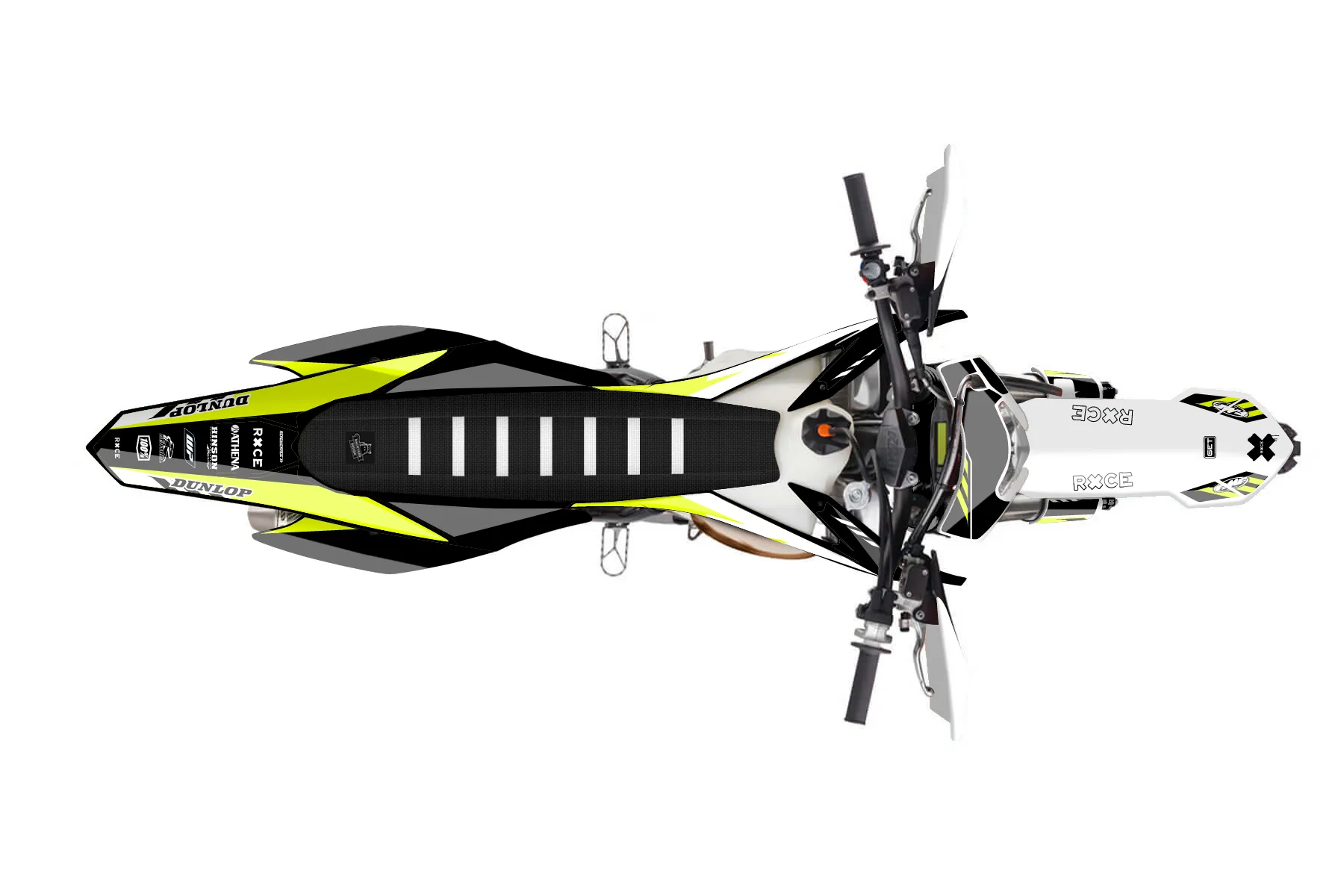 «Grip Neon» — готовый комплект графики серии Maverick для KTM Enduro Graphic Kit KTM EXC 250 2014. В комплекте: графика на бак и боковые облицовки, крылья (переднее и заднее), передний щиток, номерные таблички, защита вилки. Материал: ПВХ-винил 80 мкр с холодной ламинацией 300 мкр, общая толщина 380 мкр; покрытие глянцевое или матовое на выбор. Устойчив к UV-излучению, воде, бензину и мойке высокого давления. Клей акриловый на сольвентной основе — постоянный, для гибких пластиков. На простых поверхностях монтируется без нагрева; для сложных изгибов рекомендуем фен. Этот пресет можно заказать как есть или взять за основу в конструкторе: поменять цвета, добавить стартовый номер и свой бренд. Производство — 3–5 рабочих дней, доставка по России СДЭКом или Почтой, по СНГ — курьерскими службами.