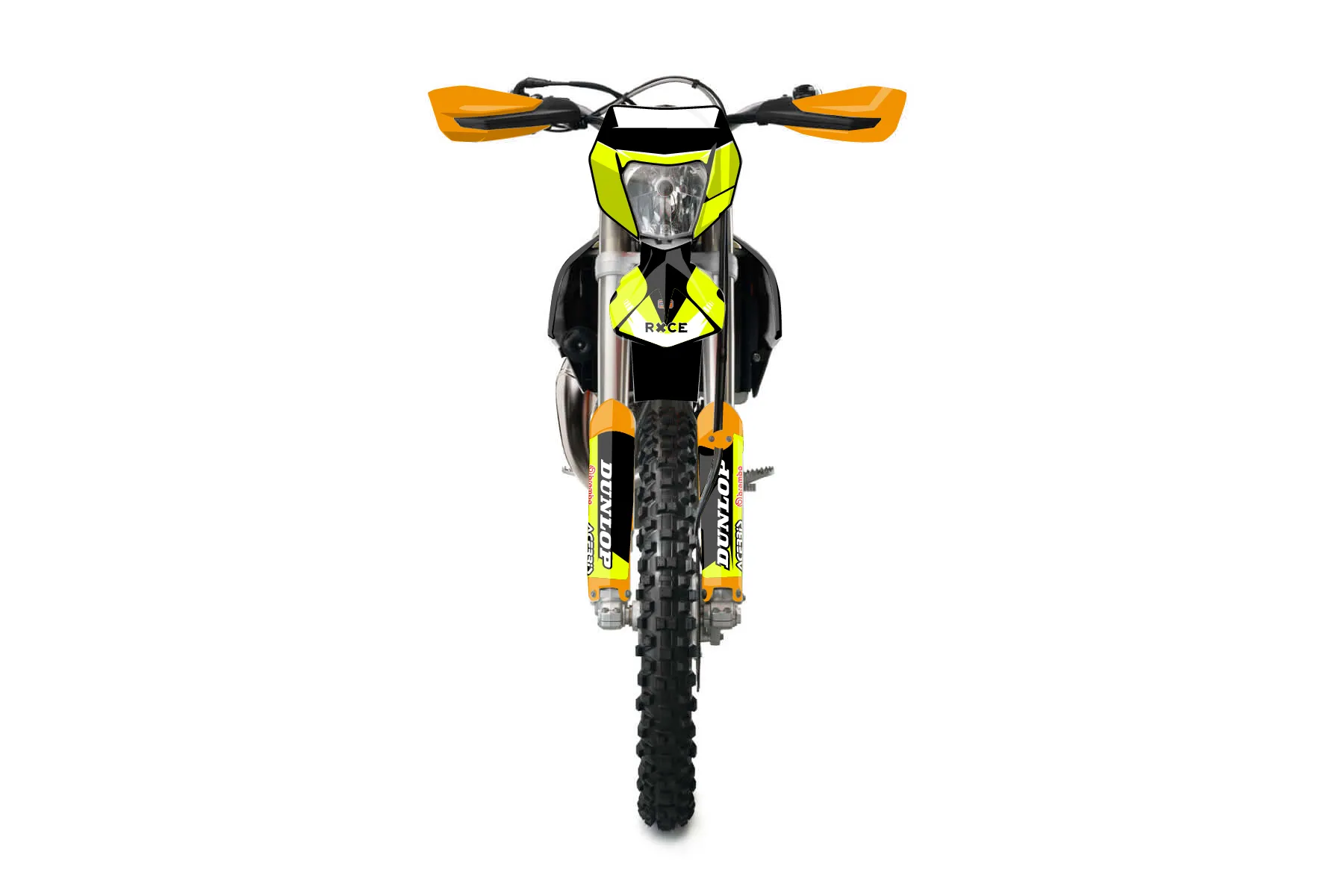 «Modified Neon» — готовый комплект графики серии Modified для KTM Enduro Graphic Kit KTM EXC 250 2014. В комплекте: графика на бак и боковые облицовки, крылья (переднее и заднее), передний щиток, номерные таблички, защита вилки. Материал: ПВХ-винил 80 мкр с холодной ламинацией 300 мкр, общая толщина 380 мкр; покрытие глянцевое или матовое на выбор. Устойчив к UV-излучению, воде, бензину и мойке высокого давления. Клей акриловый на сольвентной основе — постоянный, для гибких пластиков. На простых поверхностях монтируется без нагрева; для сложных изгибов рекомендуем фен. Этот пресет можно заказать как есть или взять за основу в конструкторе: поменять цвета, добавить стартовый номер и свой бренд. Производство — 3–5 рабочих дней, доставка по России СДЭКом или Почтой, по СНГ — курьерскими службами.