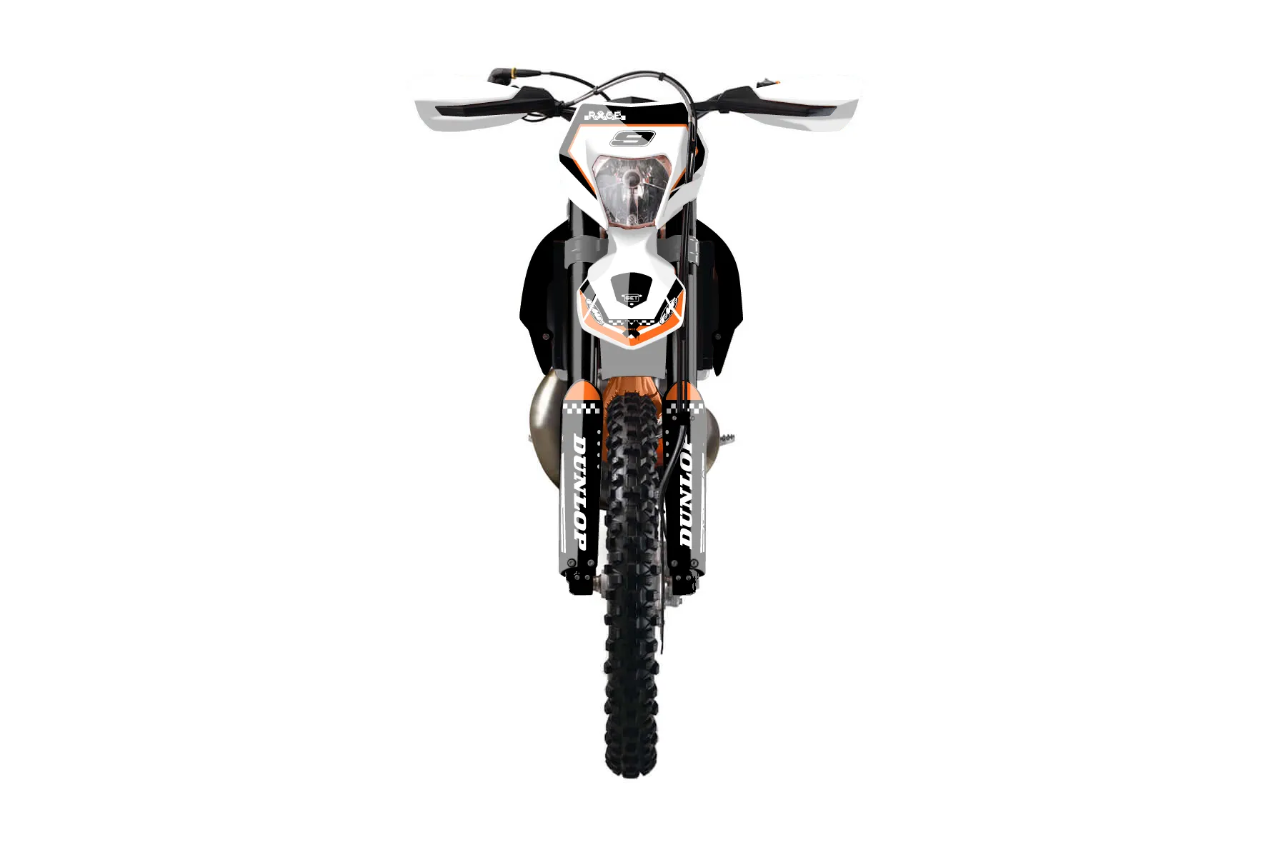 «Chef» — готовый комплект графики серии Staple для KTM Enduro Graphic Kit KTM EXC 250 2014. В комплекте: графика на бак и боковые облицовки, крылья (переднее и заднее), передний щиток, номерные таблички, защита вилки. Материал: ПВХ-винил 80 мкр с холодной ламинацией 300 мкр, общая толщина 380 мкр; покрытие глянцевое или матовое на выбор. Устойчив к UV-излучению, воде, бензину и мойке высокого давления. Клей акриловый на сольвентной основе — постоянный, для гибких пластиков. На простых поверхностях монтируется без нагрева; для сложных изгибов рекомендуем фен. Этот пресет можно заказать как есть или взять за основу в конструкторе: поменять цвета, добавить стартовый номер и свой бренд. Производство — 3–5 рабочих дней, доставка по России СДЭКом или Почтой, по СНГ — курьерскими службами.
