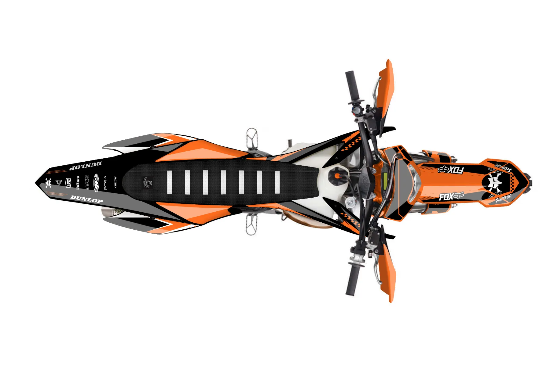 «jgktm» — готовый комплект графики серии Staple для KTM Enduro Graphic Kit KTM EXC 250 2014. В комплекте: графика на бак и боковые облицовки, крылья (переднее и заднее), передний щиток, номерные таблички, защита вилки. Материал: ПВХ-винил 80 мкр с холодной ламинацией 300 мкр, общая толщина 380 мкр; покрытие глянцевое или матовое на выбор. Устойчив к UV-излучению, воде, бензину и мойке высокого давления. Клей акриловый на сольвентной основе — постоянный, для гибких пластиков. На простых поверхностях монтируется без нагрева; для сложных изгибов рекомендуем фен. Этот пресет можно заказать как есть или взять за основу в конструкторе: поменять цвета, добавить стартовый номер и свой бренд. Производство — 3–5 рабочих дней, доставка по России СДЭКом или Почтой, по СНГ — курьерскими службами.
