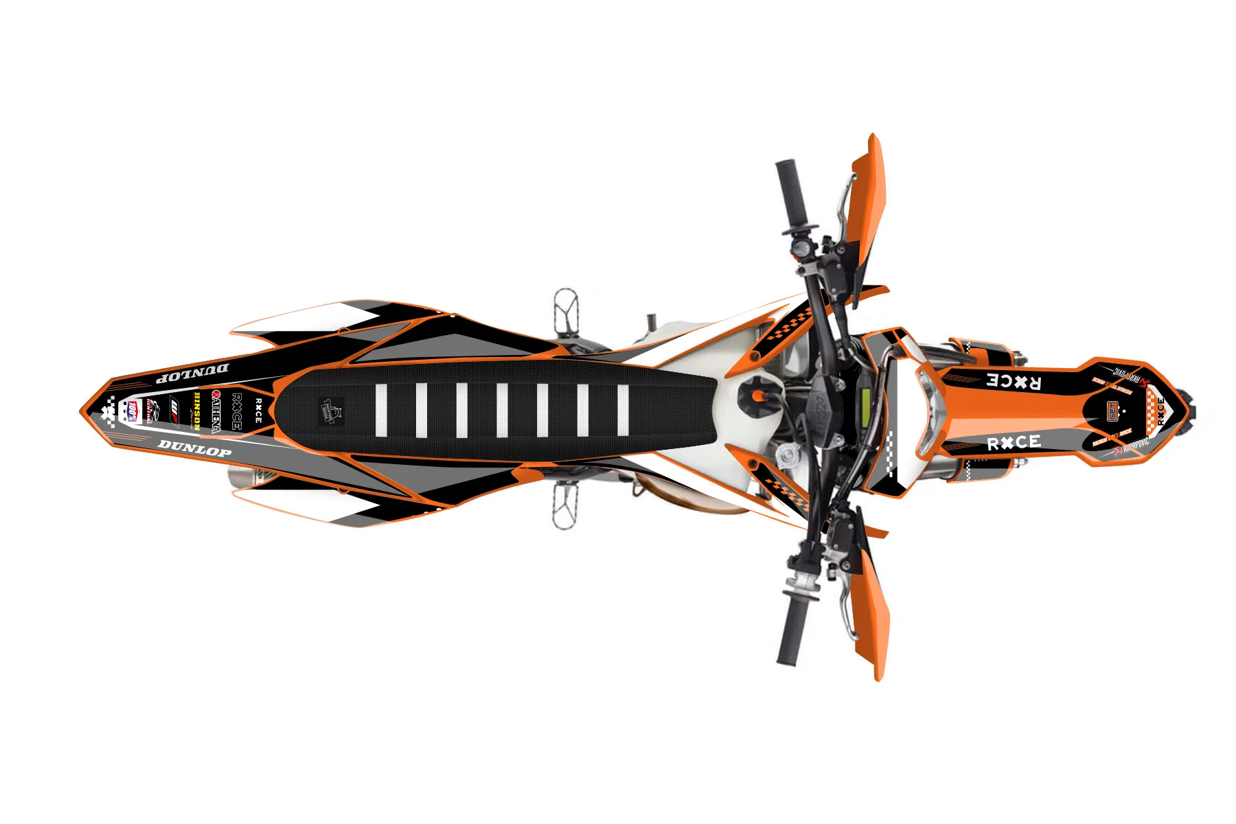 «Raw» — готовый комплект графики серии Staple для KTM Enduro Graphic Kit KTM EXC 250 2014. В комплекте: графика на бак и боковые облицовки, крылья (переднее и заднее), передний щиток, номерные таблички, защита вилки. Материал: ПВХ-винил 80 мкр с холодной ламинацией 300 мкр, общая толщина 380 мкр; покрытие глянцевое или матовое на выбор. Устойчив к UV-излучению, воде, бензину и мойке высокого давления. Клей акриловый на сольвентной основе — постоянный, для гибких пластиков. На простых поверхностях монтируется без нагрева; для сложных изгибов рекомендуем фен. Этот пресет можно заказать как есть или взять за основу в конструкторе: поменять цвета, добавить стартовый номер и свой бренд. Производство — 3–5 рабочих дней, доставка по России СДЭКом или Почтой, по СНГ — курьерскими службами.