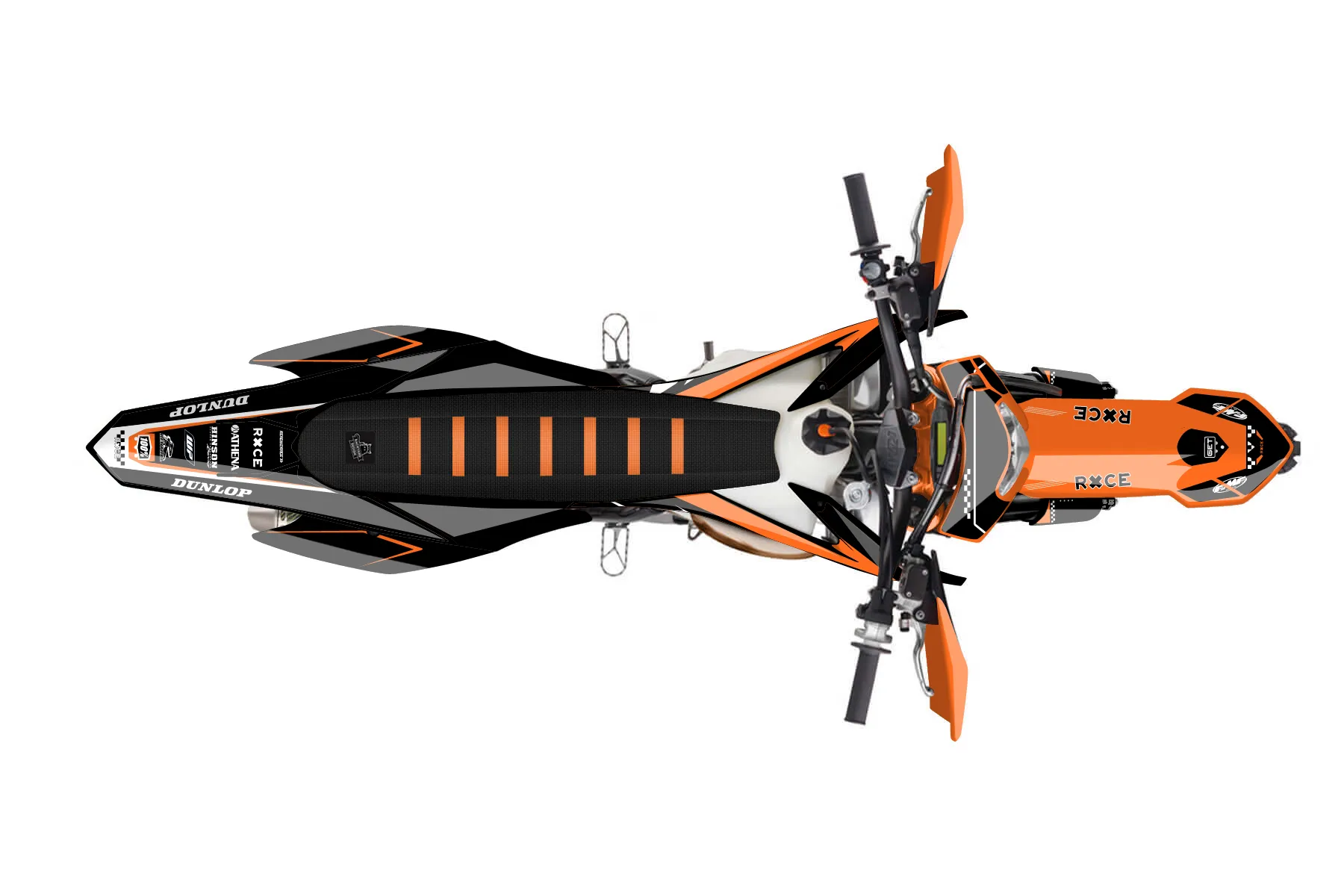 «Zebra» — готовый комплект графики серии Staple для KTM Enduro Graphic Kit KTM EXC 250 2014. В комплекте: графика на бак и боковые облицовки, крылья (переднее и заднее), передний щиток, номерные таблички, защита вилки. Материал: ПВХ-винил 80 мкр с холодной ламинацией 300 мкр, общая толщина 380 мкр; покрытие глянцевое или матовое на выбор. Устойчив к UV-излучению, воде, бензину и мойке высокого давления. Клей акриловый на сольвентной основе — постоянный, для гибких пластиков. На простых поверхностях монтируется без нагрева; для сложных изгибов рекомендуем фен. Этот пресет можно заказать как есть или взять за основу в конструкторе: поменять цвета, добавить стартовый номер и свой бренд. Производство — 3–5 рабочих дней, доставка по России СДЭКом или Почтой, по СНГ — курьерскими службами.