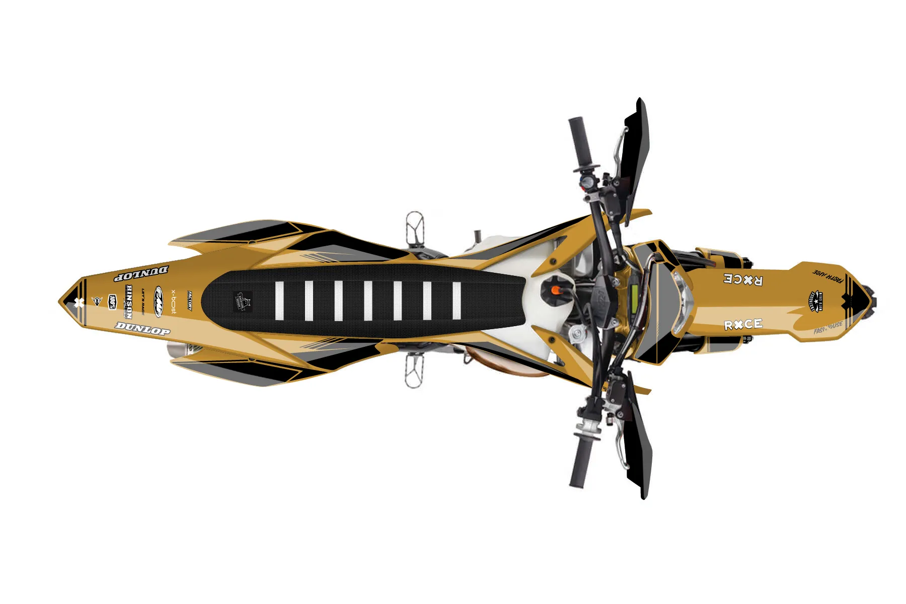 «Calm» — готовый комплект графики серии Untucked для KTM Enduro Graphic Kit KTM EXC 250 2014. В комплекте: графика на бак и боковые облицовки, крылья (переднее и заднее), передний щиток, номерные таблички, защита вилки. Материал: ПВХ-винил 80 мкр с холодной ламинацией 300 мкр, общая толщина 380 мкр; покрытие глянцевое или матовое на выбор. Устойчив к UV-излучению, воде, бензину и мойке высокого давления. Клей акриловый на сольвентной основе — постоянный, для гибких пластиков. На простых поверхностях монтируется без нагрева; для сложных изгибов рекомендуем фен. Этот пресет можно заказать как есть или взять за основу в конструкторе: поменять цвета, добавить стартовый номер и свой бренд. Производство — 3–5 рабочих дней, доставка по России СДЭКом или Почтой, по СНГ — курьерскими службами.