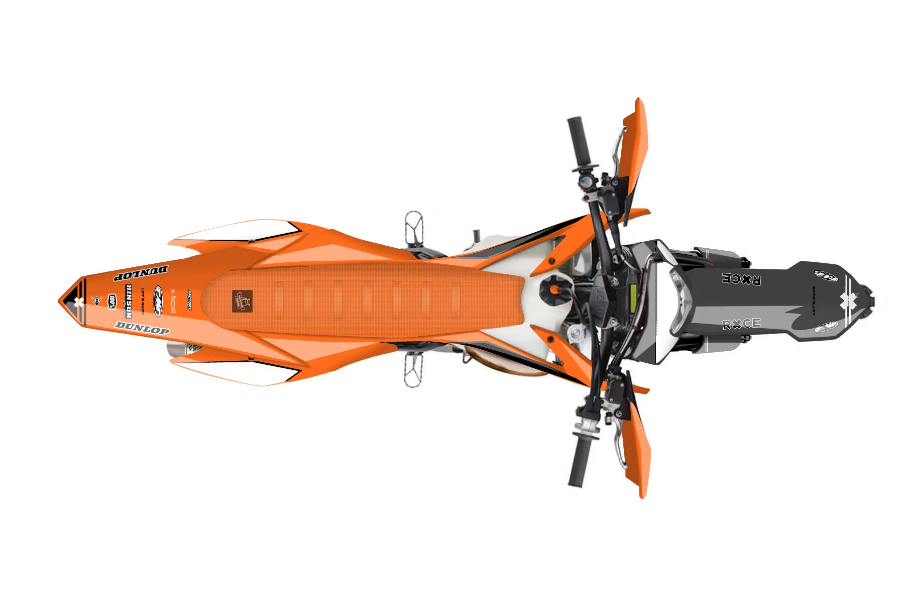 «Certain» — готовый комплект графики серии Untucked для KTM Enduro Graphic Kit KTM EXC 250 2014. В комплекте: графика на бак и боковые облицовки, крылья (переднее и заднее), передний щиток, номерные таблички, защита вилки. Материал: ПВХ-винил 80 мкр с холодной ламинацией 300 мкр, общая толщина 380 мкр; покрытие глянцевое или матовое на выбор. Устойчив к UV-излучению, воде, бензину и мойке высокого давления. Клей акриловый на сольвентной основе — постоянный, для гибких пластиков. На простых поверхностях монтируется без нагрева; для сложных изгибов рекомендуем фен. Этот пресет можно заказать как есть или взять за основу в конструкторе: поменять цвета, добавить стартовый номер и свой бренд. Производство — 3–5 рабочих дней, доставка по России СДЭКом или Почтой, по СНГ — курьерскими службами.