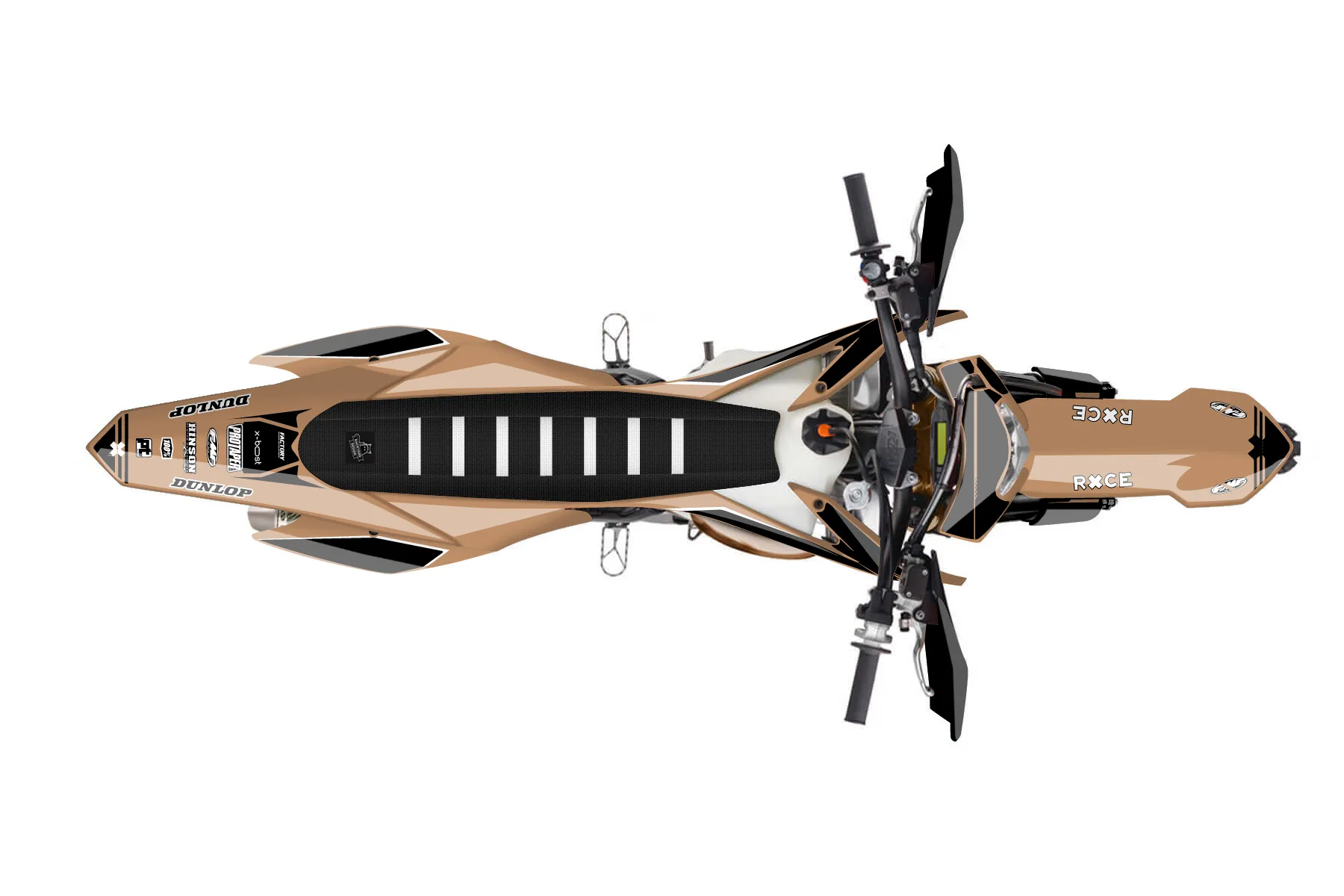 «Entire» — готовый комплект графики серии Untucked для KTM Enduro Graphic Kit KTM EXC 250 2014. В комплекте: графика на бак и боковые облицовки, крылья (переднее и заднее), передний щиток, номерные таблички, защита вилки. Материал: ПВХ-винил 80 мкр с холодной ламинацией 300 мкр, общая толщина 380 мкр; покрытие глянцевое или матовое на выбор. Устойчив к UV-излучению, воде, бензину и мойке высокого давления. Клей акриловый на сольвентной основе — постоянный, для гибких пластиков. На простых поверхностях монтируется без нагрева; для сложных изгибов рекомендуем фен. Этот пресет можно заказать как есть или взять за основу в конструкторе: поменять цвета, добавить стартовый номер и свой бренд. Производство — 3–5 рабочих дней, доставка по России СДЭКом или Почтой, по СНГ — курьерскими службами.