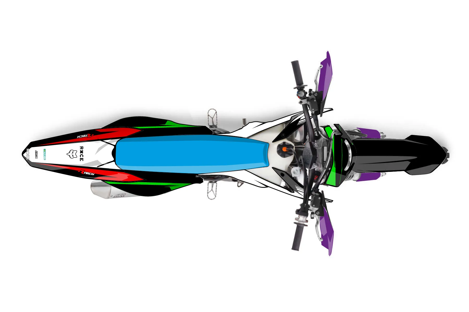 «vertigo» — готовый комплект графики серии Factory для KTM Enduro Graphic Kit KTM EXC 250 2016. В комплекте: графика на бак и боковые облицовки, крылья (переднее и заднее), передний щиток, номерные таблички, защита вилки. Материал: ПВХ-винил 80 мкр с холодной ламинацией 300 мкр, общая толщина 380 мкр; покрытие глянцевое или матовое на выбор. Устойчив к UV-излучению, воде, бензину и мойке высокого давления. Клей акриловый на сольвентной основе — постоянный, для гибких пластиков. На простых поверхностях монтируется без нагрева; для сложных изгибов рекомендуем фен. Этот пресет можно заказать как есть или взять за основу в конструкторе: поменять цвета, добавить стартовый номер и свой бренд. Производство — 3–5 рабочих дней, доставка по России СДЭКом или Почтой, по СНГ — курьерскими службами.