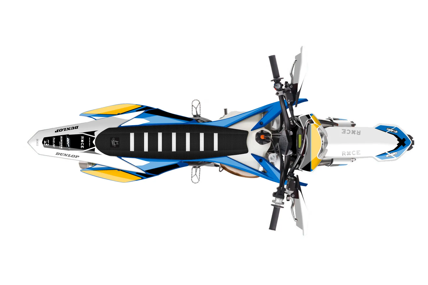 «All-Star» — готовый комплект графики серии Flow для KTM Enduro Graphic Kit KTM EXC 250 2016. В комплекте: графика на бак и боковые облицовки, крылья (переднее и заднее), передний щиток, номерные таблички, защита вилки. Материал: ПВХ-винил 80 мкр с холодной ламинацией 300 мкр, общая толщина 380 мкр; покрытие глянцевое или матовое на выбор. Устойчив к UV-излучению, воде, бензину и мойке высокого давления. Клей акриловый на сольвентной основе — постоянный, для гибких пластиков. На простых поверхностях монтируется без нагрева; для сложных изгибов рекомендуем фен. Этот пресет можно заказать как есть или взять за основу в конструкторе: поменять цвета, добавить стартовый номер и свой бренд. Производство — 3–5 рабочих дней, доставка по России СДЭКом или Почтой, по СНГ — курьерскими службами.