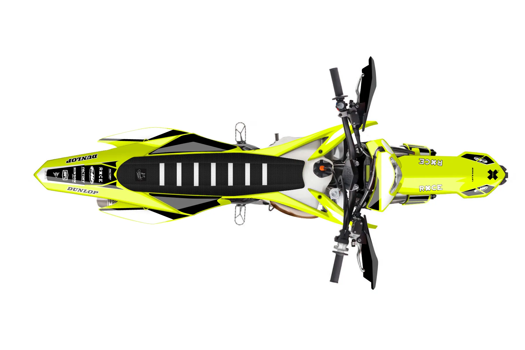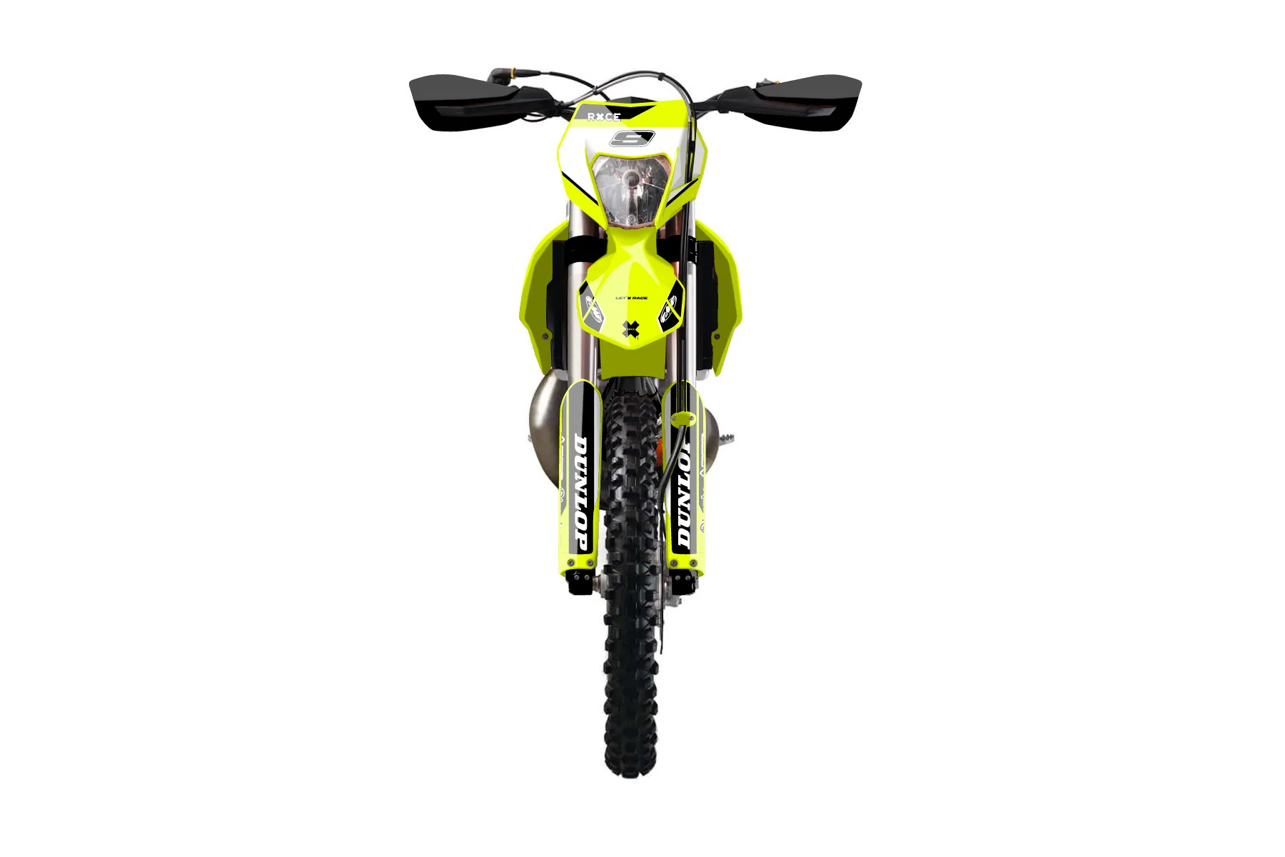 «Bright Neon» — готовый комплект графики серии Maverick для KTM Enduro Graphic Kit KTM EXC 250 2016. В комплекте: графика на бак и боковые облицовки, крылья (переднее и заднее), передний щиток, номерные таблички, защита вилки. Материал: ПВХ-винил 80 мкр с холодной ламинацией 300 мкр, общая толщина 380 мкр; покрытие глянцевое или матовое на выбор. Устойчив к UV-излучению, воде, бензину и мойке высокого давления. Клей акриловый на сольвентной основе — постоянный, для гибких пластиков. На простых поверхностях монтируется без нагрева; для сложных изгибов рекомендуем фен. Этот пресет можно заказать как есть или взять за основу в конструкторе: поменять цвета, добавить стартовый номер и свой бренд. Производство — 3–5 рабочих дней, доставка по России СДЭКом или Почтой, по СНГ — курьерскими службами.
