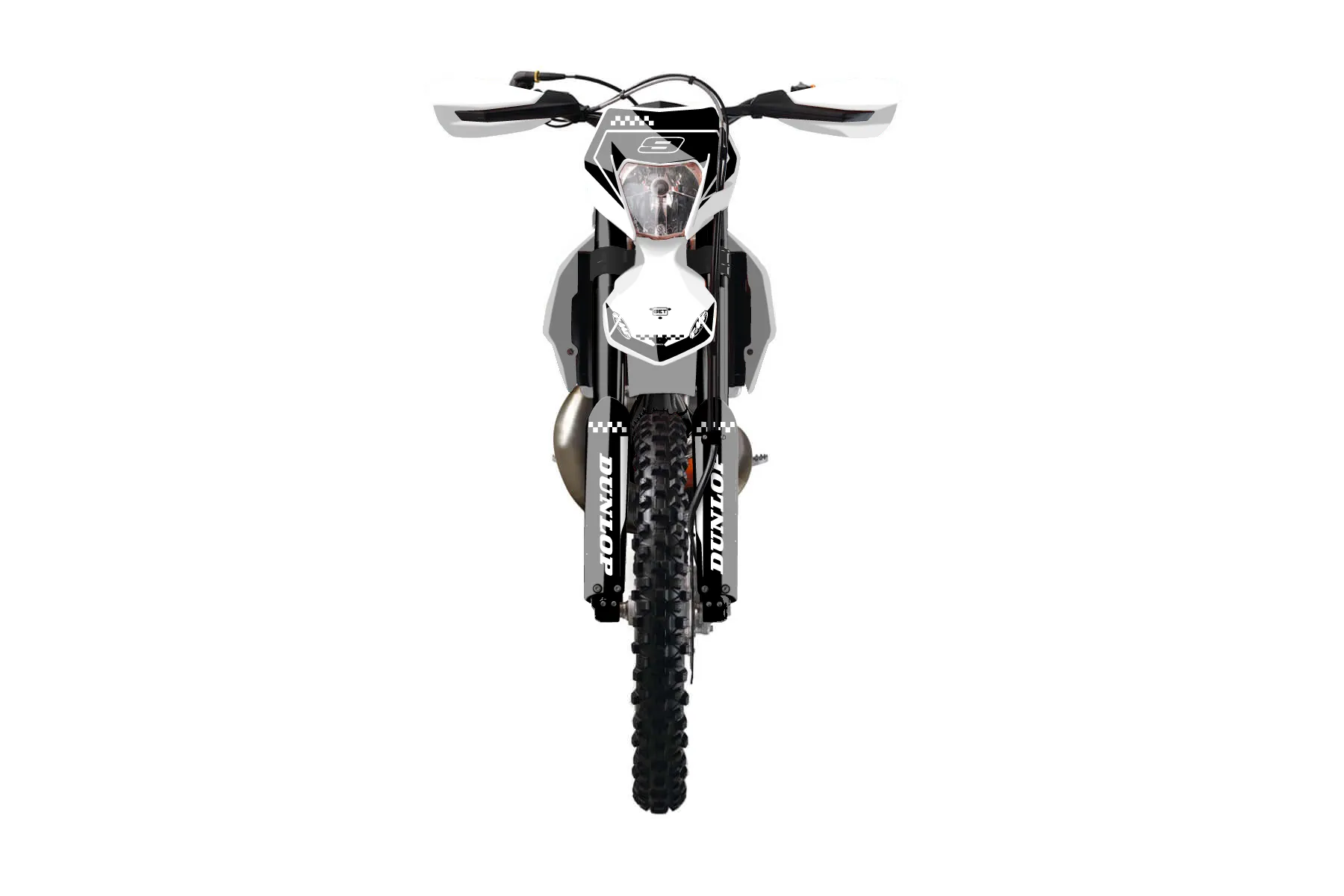 «Filter» — готовый комплект графики серии Staple для KTM Enduro Graphic Kit KTM EXC 250 2016. В комплекте: графика на бак и боковые облицовки, крылья (переднее и заднее), передний щиток, номерные таблички, защита вилки. Материал: ПВХ-винил 80 мкр с холодной ламинацией 300 мкр, общая толщина 380 мкр; покрытие глянцевое или матовое на выбор. Устойчив к UV-излучению, воде, бензину и мойке высокого давления. Клей акриловый на сольвентной основе — постоянный, для гибких пластиков. На простых поверхностях монтируется без нагрева; для сложных изгибов рекомендуем фен. Этот пресет можно заказать как есть или взять за основу в конструкторе: поменять цвета, добавить стартовый номер и свой бренд. Производство — 3–5 рабочих дней, доставка по России СДЭКом или Почтой, по СНГ — курьерскими службами.