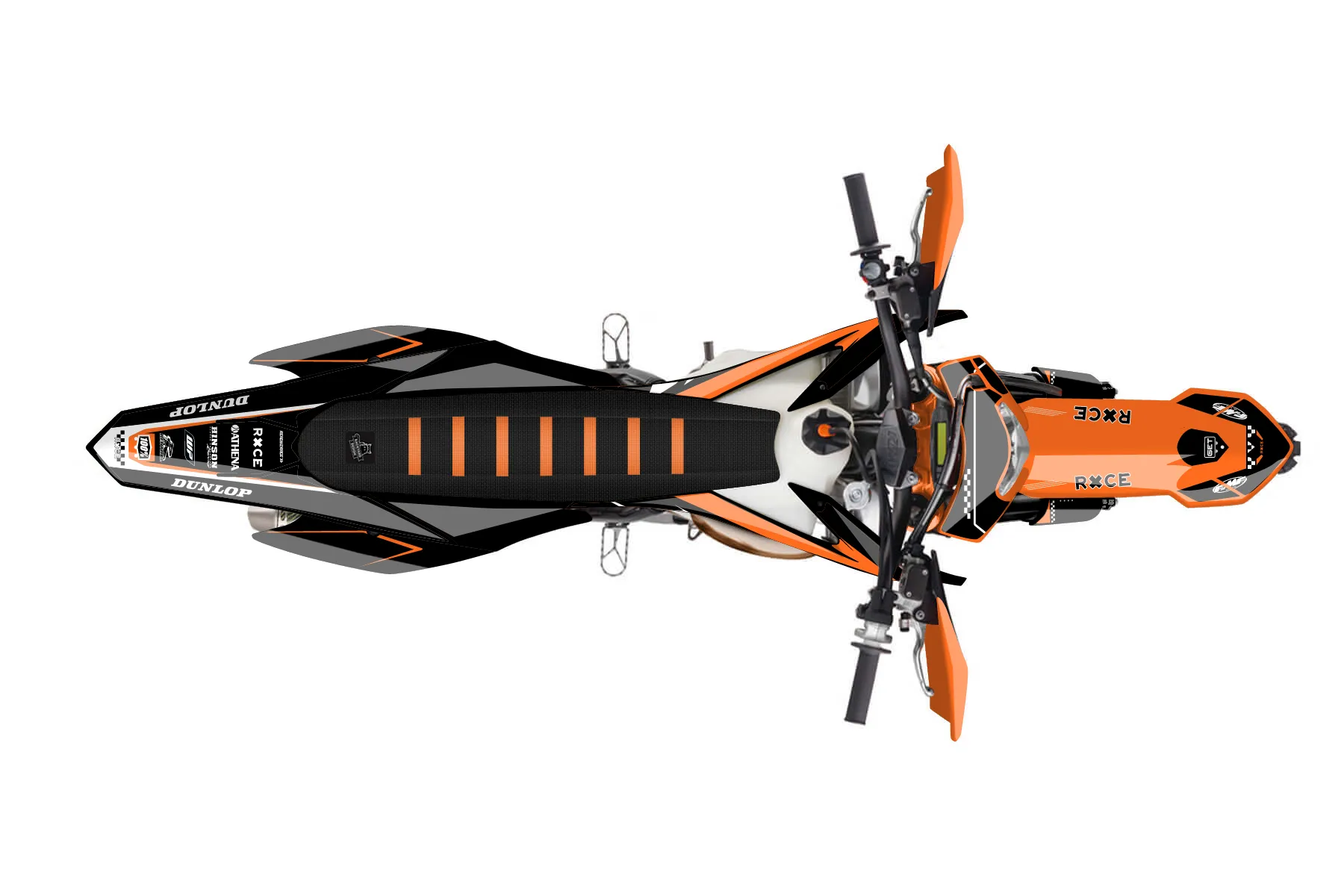 «Zebra» — готовый комплект графики серии Staple для KTM Enduro Graphic Kit KTM EXC 250 2016. В комплекте: графика на бак и боковые облицовки, крылья (переднее и заднее), передний щиток, номерные таблички, защита вилки. Материал: ПВХ-винил 80 мкр с холодной ламинацией 300 мкр, общая толщина 380 мкр; покрытие глянцевое или матовое на выбор. Устойчив к UV-излучению, воде, бензину и мойке высокого давления. Клей акриловый на сольвентной основе — постоянный, для гибких пластиков. На простых поверхностях монтируется без нагрева; для сложных изгибов рекомендуем фен. Этот пресет можно заказать как есть или взять за основу в конструкторе: поменять цвета, добавить стартовый номер и свой бренд. Производство — 3–5 рабочих дней, доставка по России СДЭКом или Почтой, по СНГ — курьерскими службами.