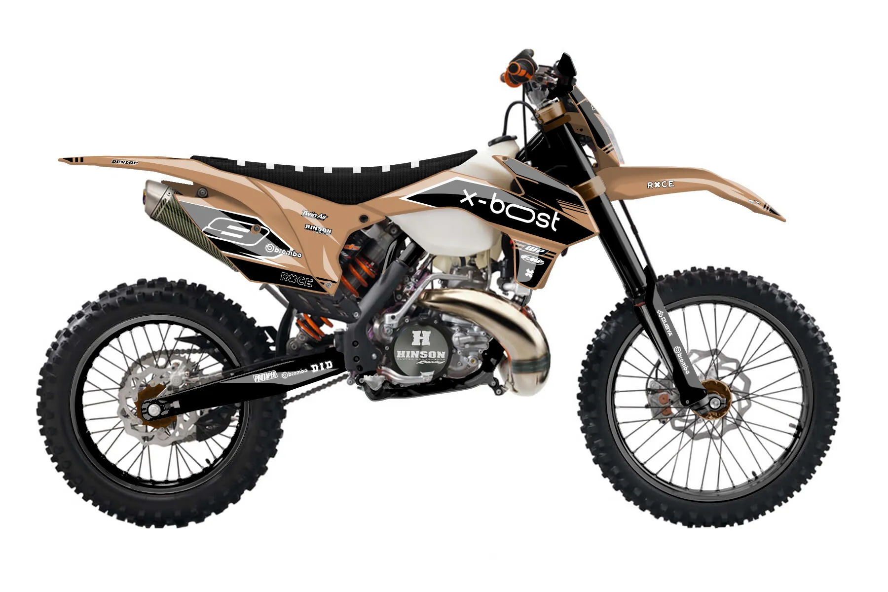 «Entire» — готовый комплект графики серии Untucked для KTM Enduro Graphic Kit KTM EXC 250 2016. В комплекте: графика на бак и боковые облицовки, крылья (переднее и заднее), передний щиток, номерные таблички, защита вилки. Материал: ПВХ-винил 80 мкр с холодной ламинацией 300 мкр, общая толщина 380 мкр; покрытие глянцевое или матовое на выбор. Устойчив к UV-излучению, воде, бензину и мойке высокого давления. Клей акриловый на сольвентной основе — постоянный, для гибких пластиков. На простых поверхностях монтируется без нагрева; для сложных изгибов рекомендуем фен. Этот пресет можно заказать как есть или взять за основу в конструкторе: поменять цвета, добавить стартовый номер и свой бренд. Производство — 3–5 рабочих дней, доставка по России СДЭКом или Почтой, по СНГ — курьерскими службами.